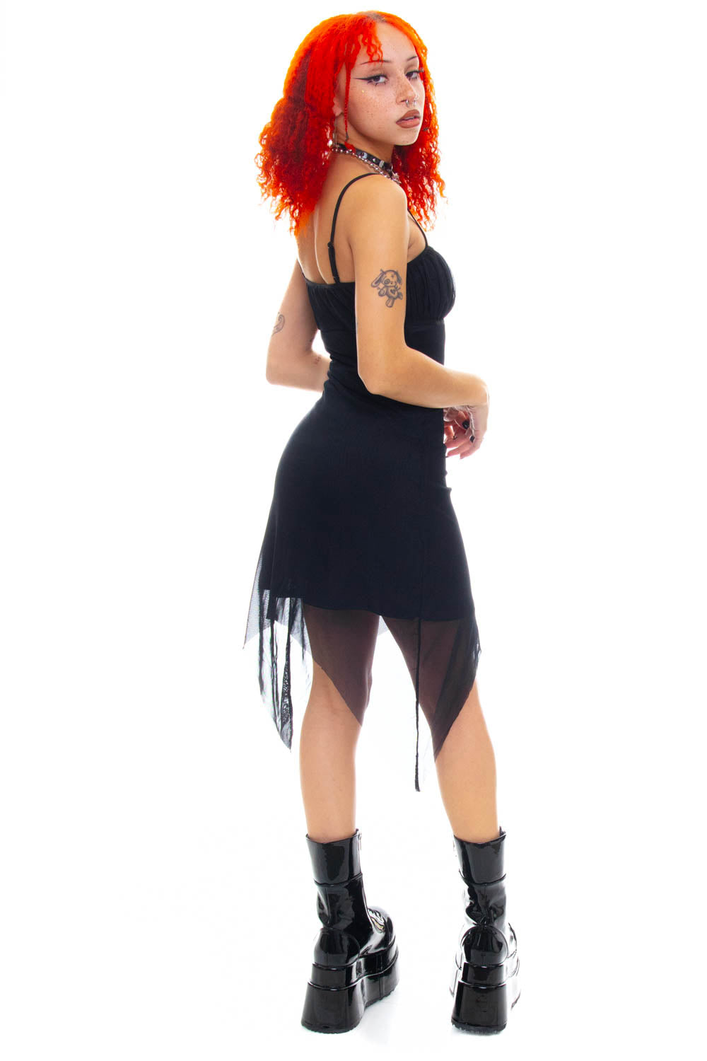 This dress has a little bit of stretch and fits at a micro mini length. Unsure of your size? Size up for maximum booty coverage!
