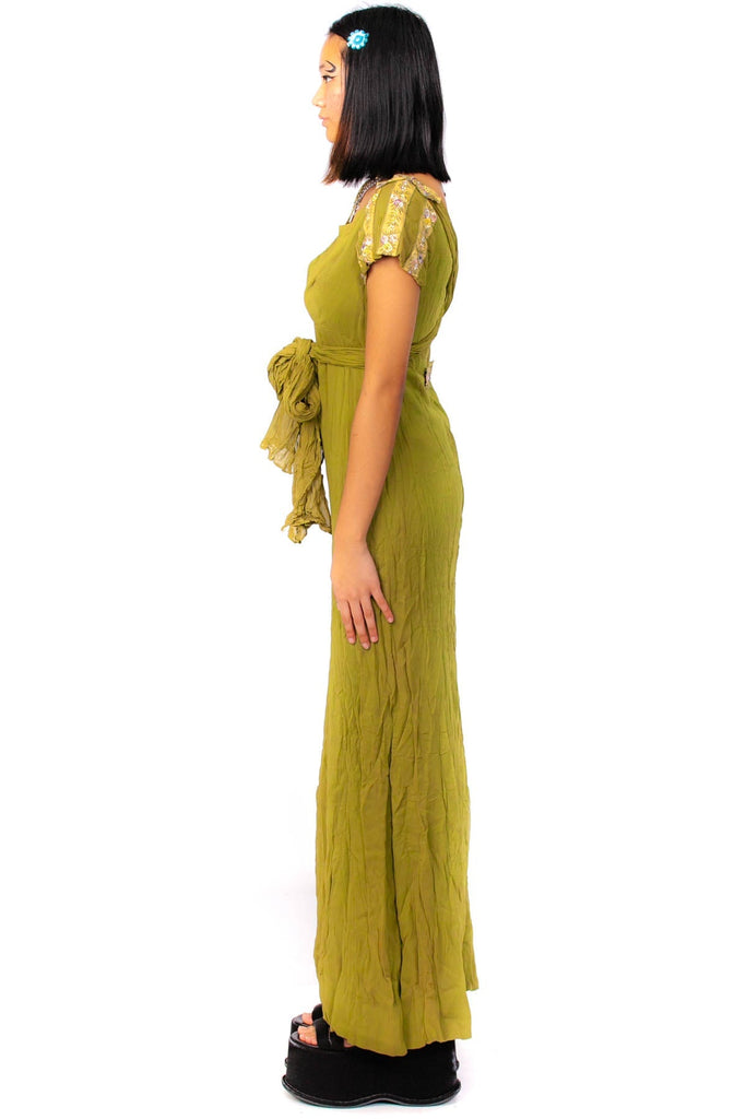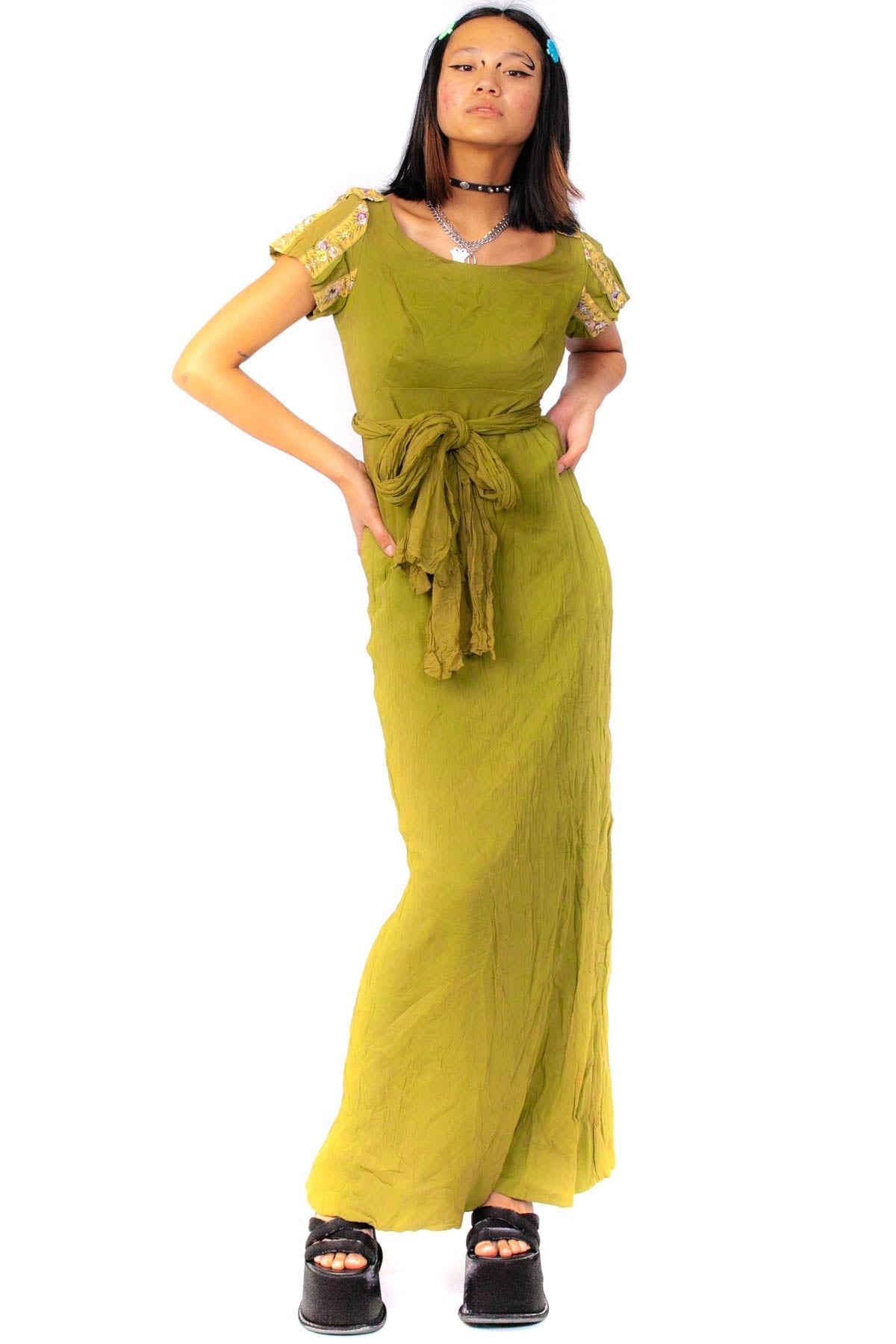 Vintage 70's Avocado Jean Union-Made Maxi Dress