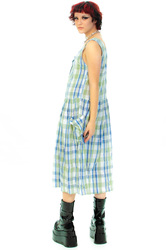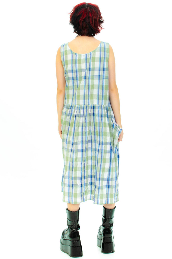 Vintage 90's Blue & Green Plaid Jumper Dress