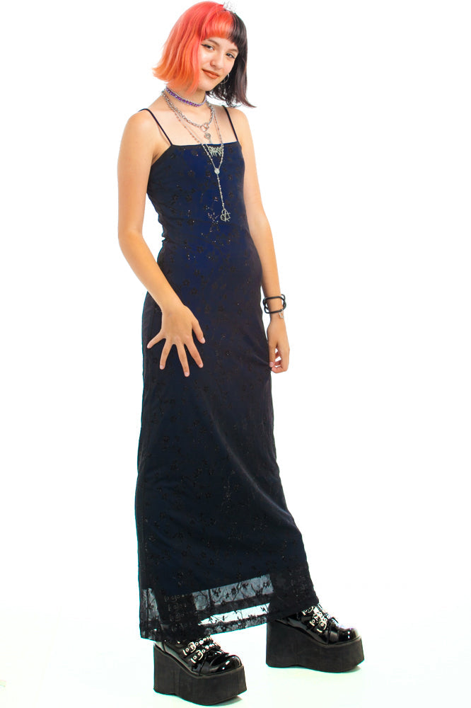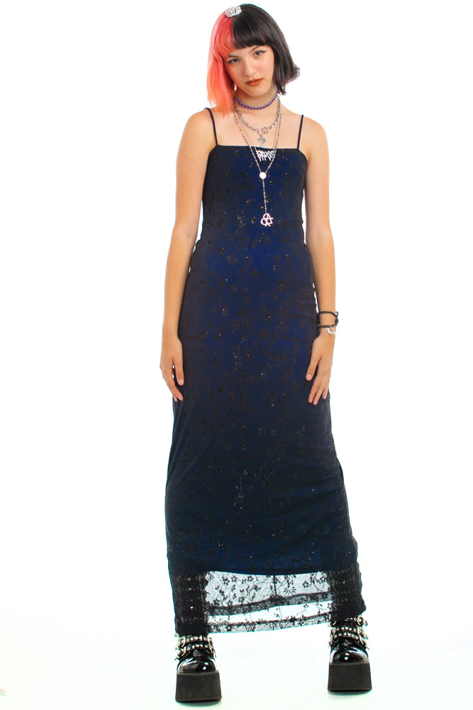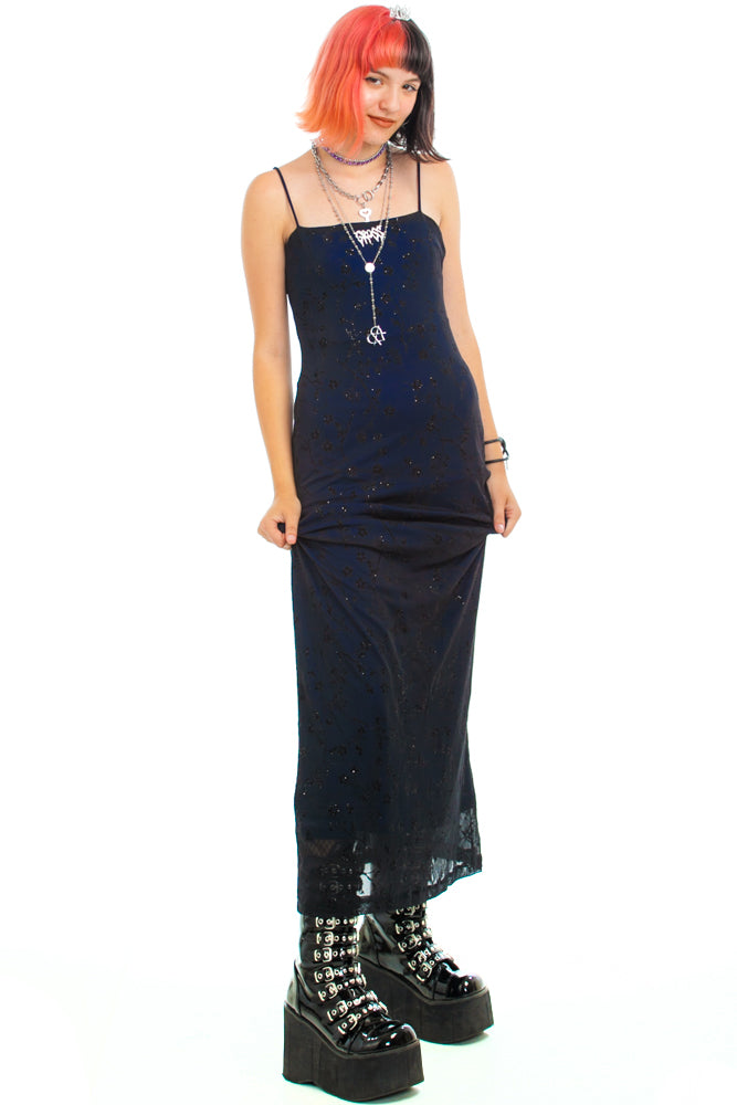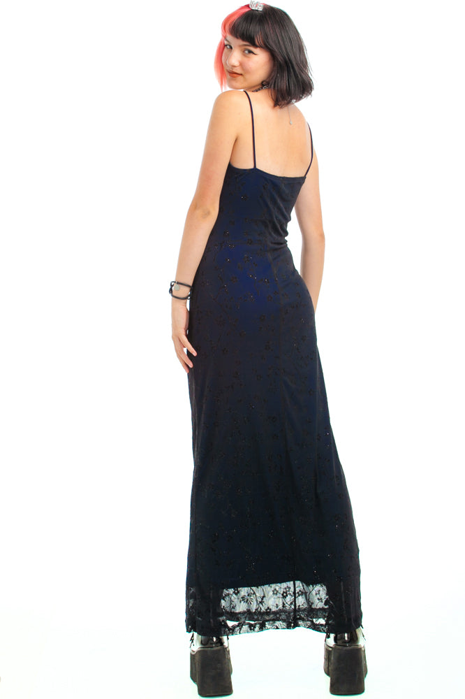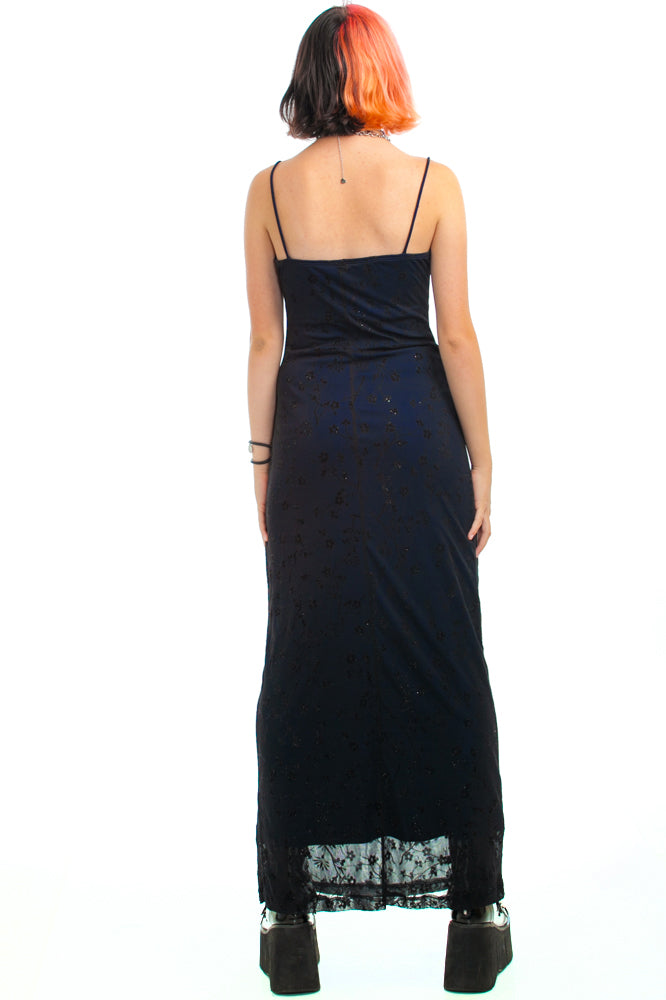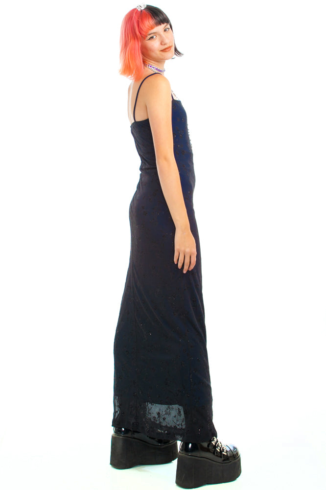 Vintage 90's Midnight Mesh Glitter Accent Maxi Dress