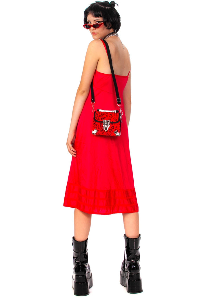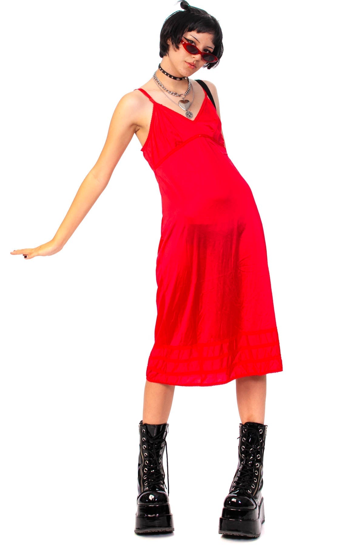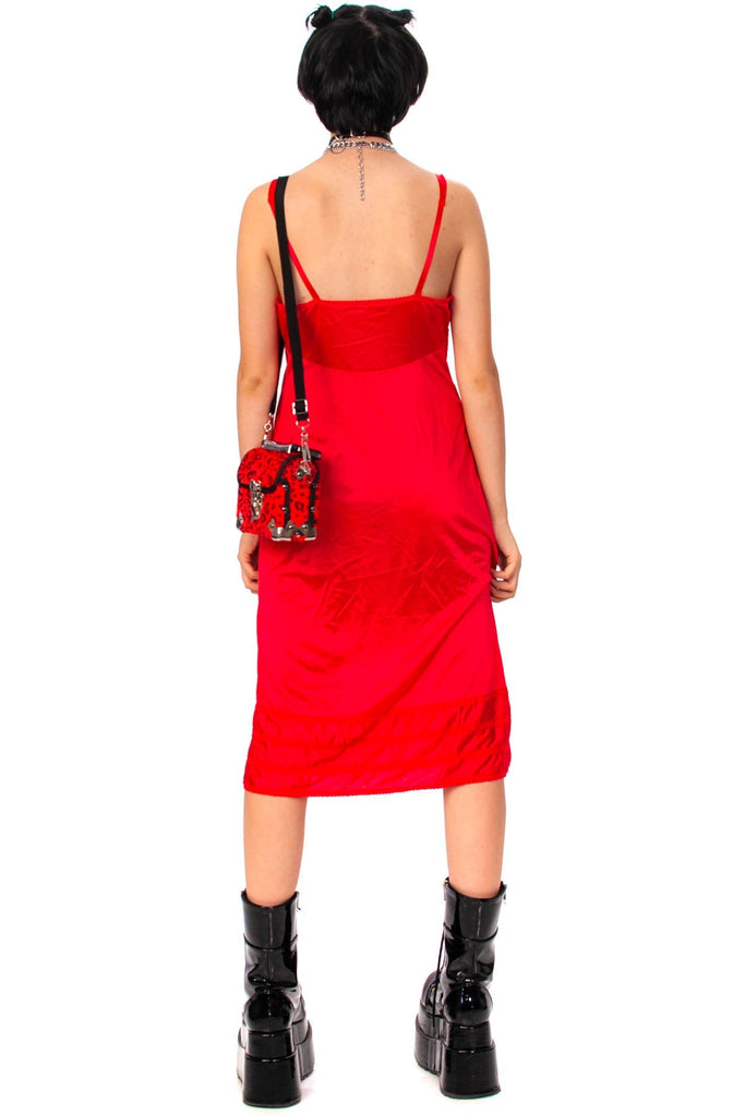 Red berry-toned midi slip dress with adjustable lingerie straps!