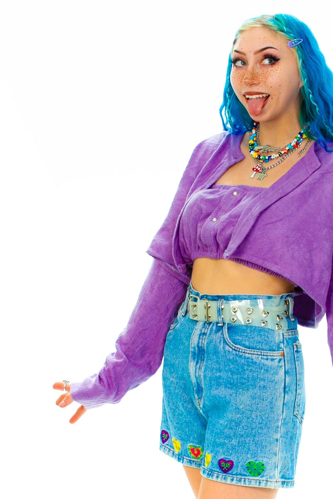 Our model Una is 5'5" with 25" waist, 34" hips, and 33" bust; she usually wears a size S. This item was not pinned on her and would best fit a size S/M.