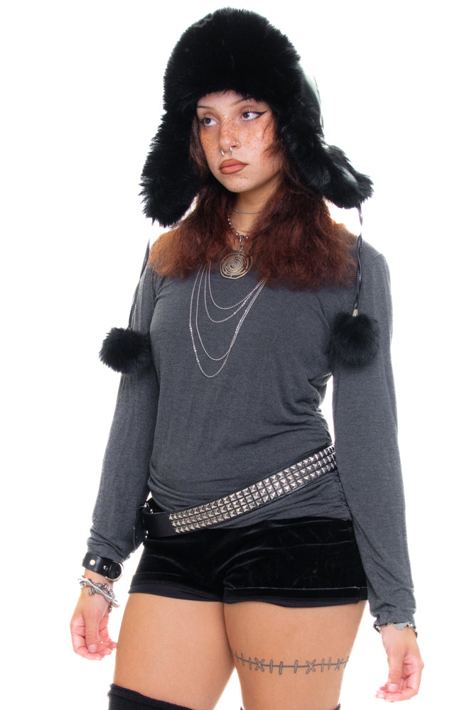 Vintage Y2K Ruched Asymmetric Long Sleever - S?M