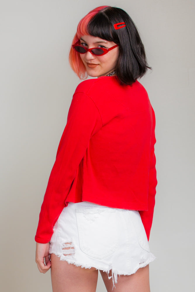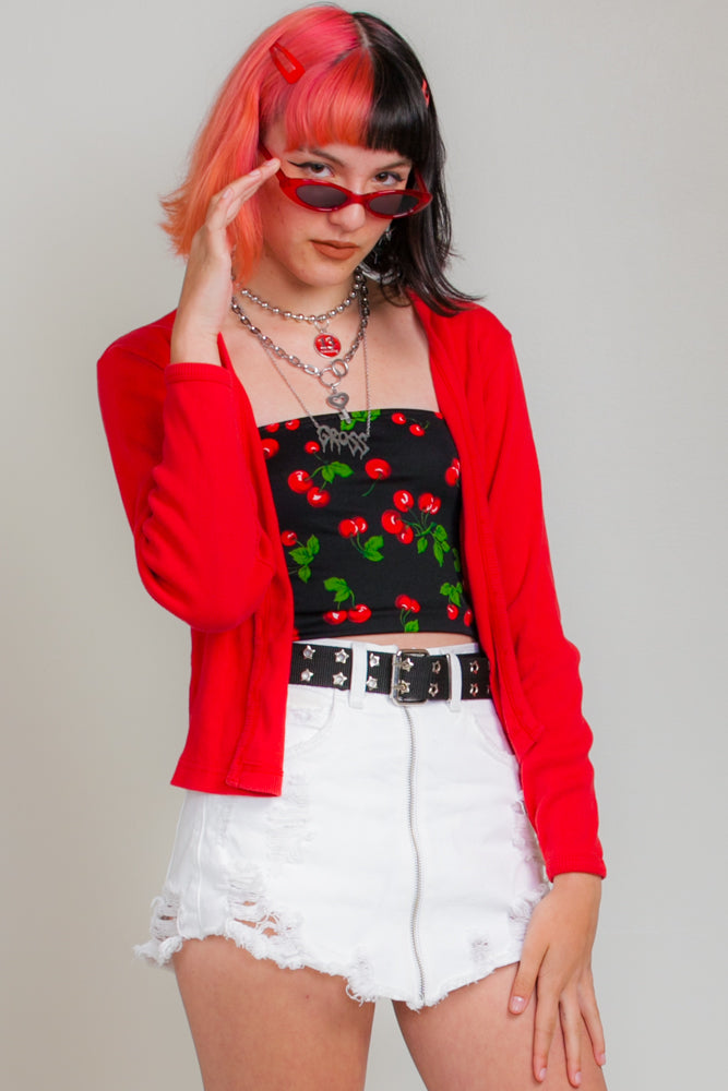 Our model Bella is 5'5" with 25" waist, 32" bust, and 32" hips; she usually wears size S.  This item was not pinned on her and would best fit up to a size M.