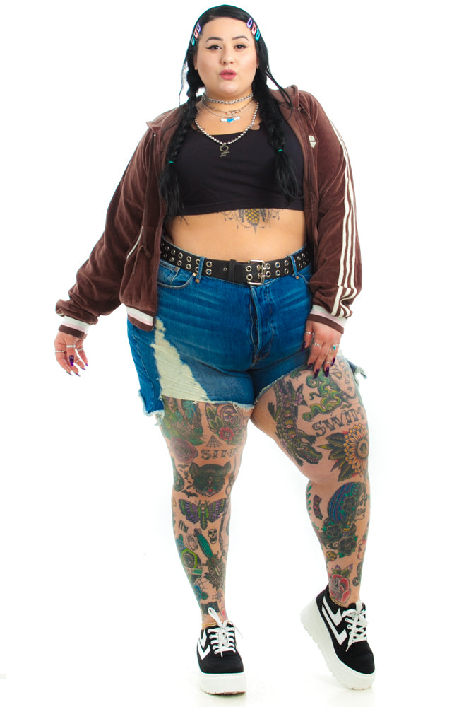 Our model Ashley is 5'7" with 46" bust, 40" waist, and 56" hips; she usually wears size 2X/3X. This item was not pinned on her and would best fit up to a size 2X!