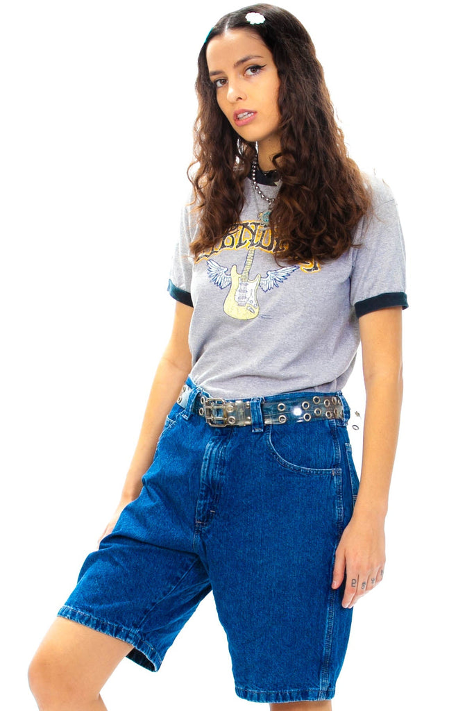 High waisted super cute blue denim Wrangler carpenter style shorts!