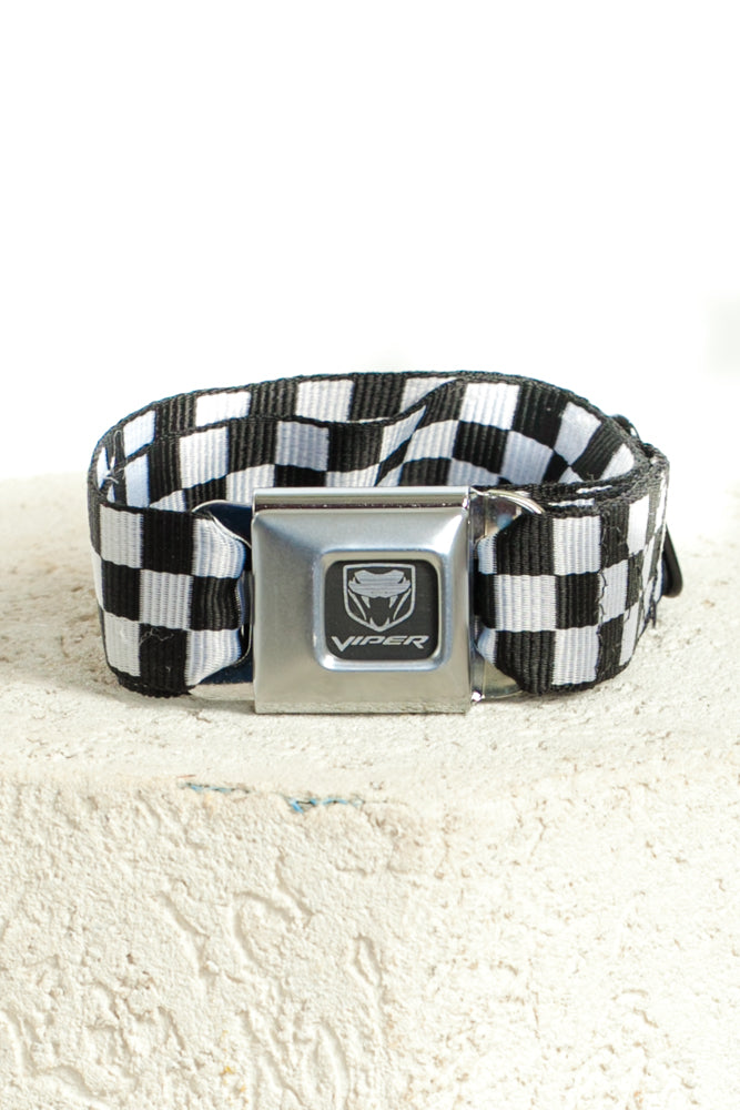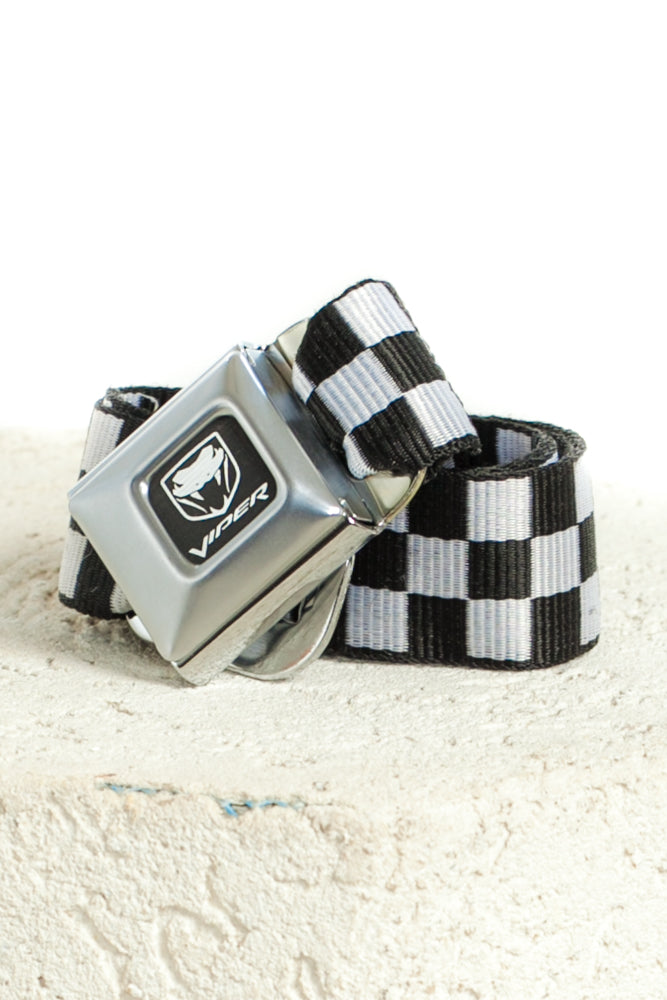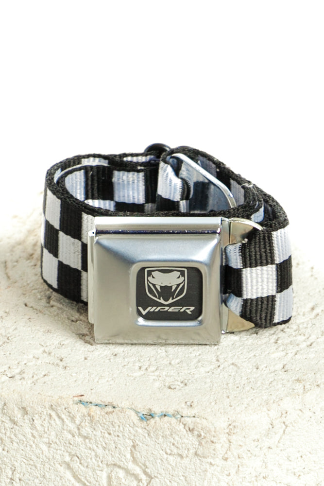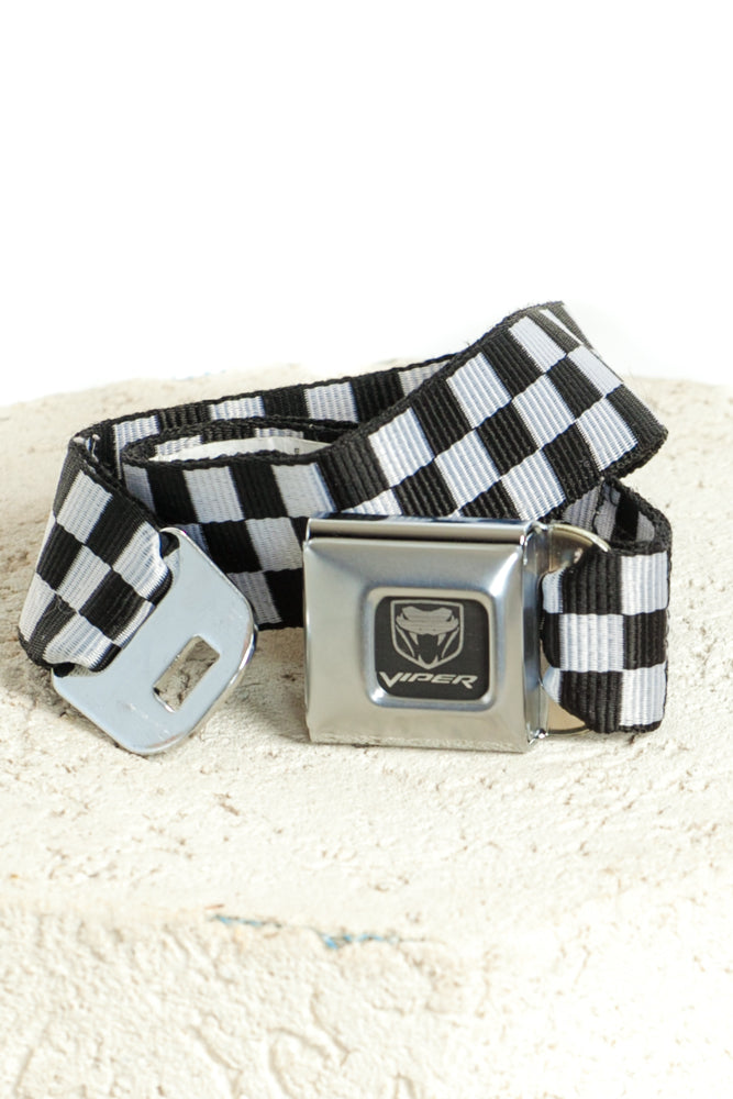 OMG! How is this belt even real?! Checkerboard seatbelt-style adjustable belt! Seatbelt style closure at front buckle (which features a snake head and reads VIPER). Super adjustable! Oh, and one more thing that's truly amazing about this baby? It's dated at 2003. Heck. Yes.