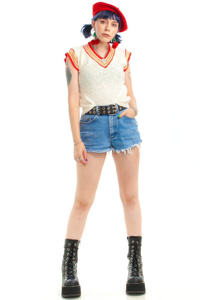 Sears, labeled size M but stretches to fit a size L easily, too!