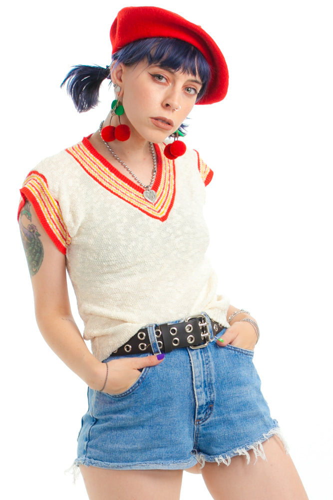 Our model Madeline is 5'3" with 24" waist, 32" bust, and 36" hips; she usually wears size XS. This item was pinned on her and it would best fit up to a size L!