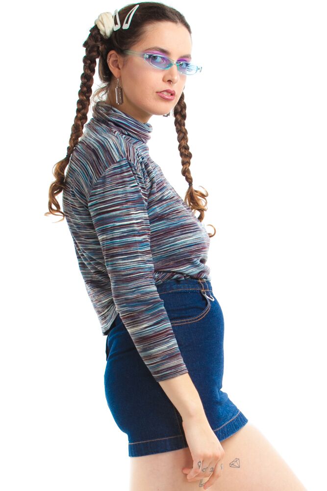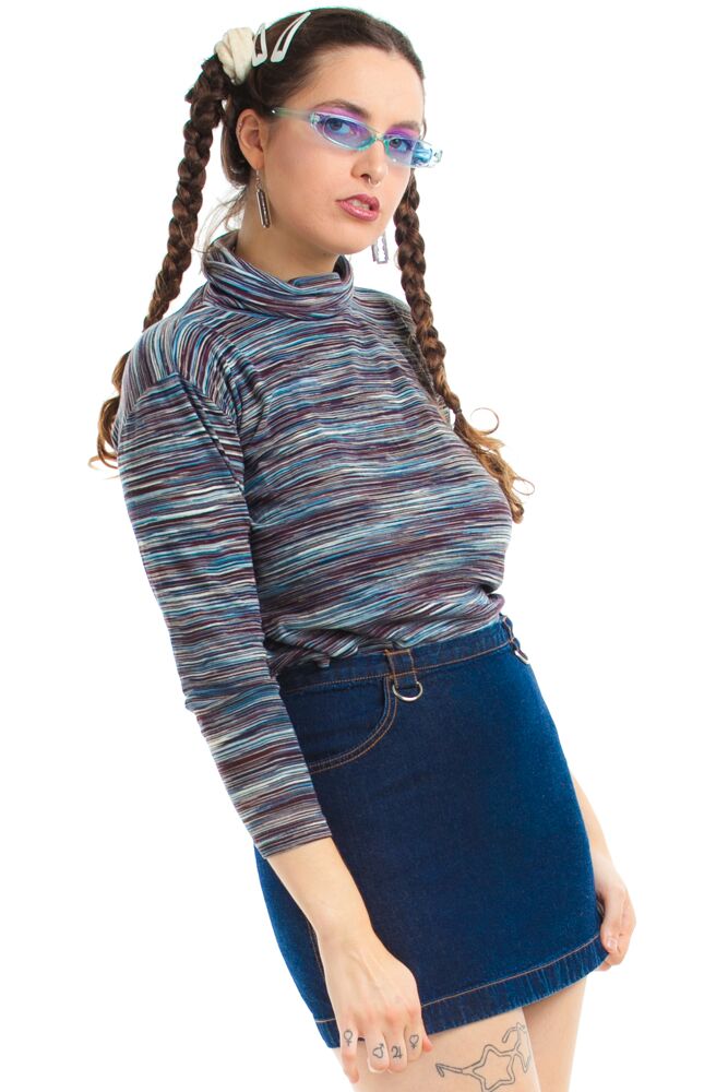 Super soft blue, purple, and white micro striped longsleever. Soo stretchy!