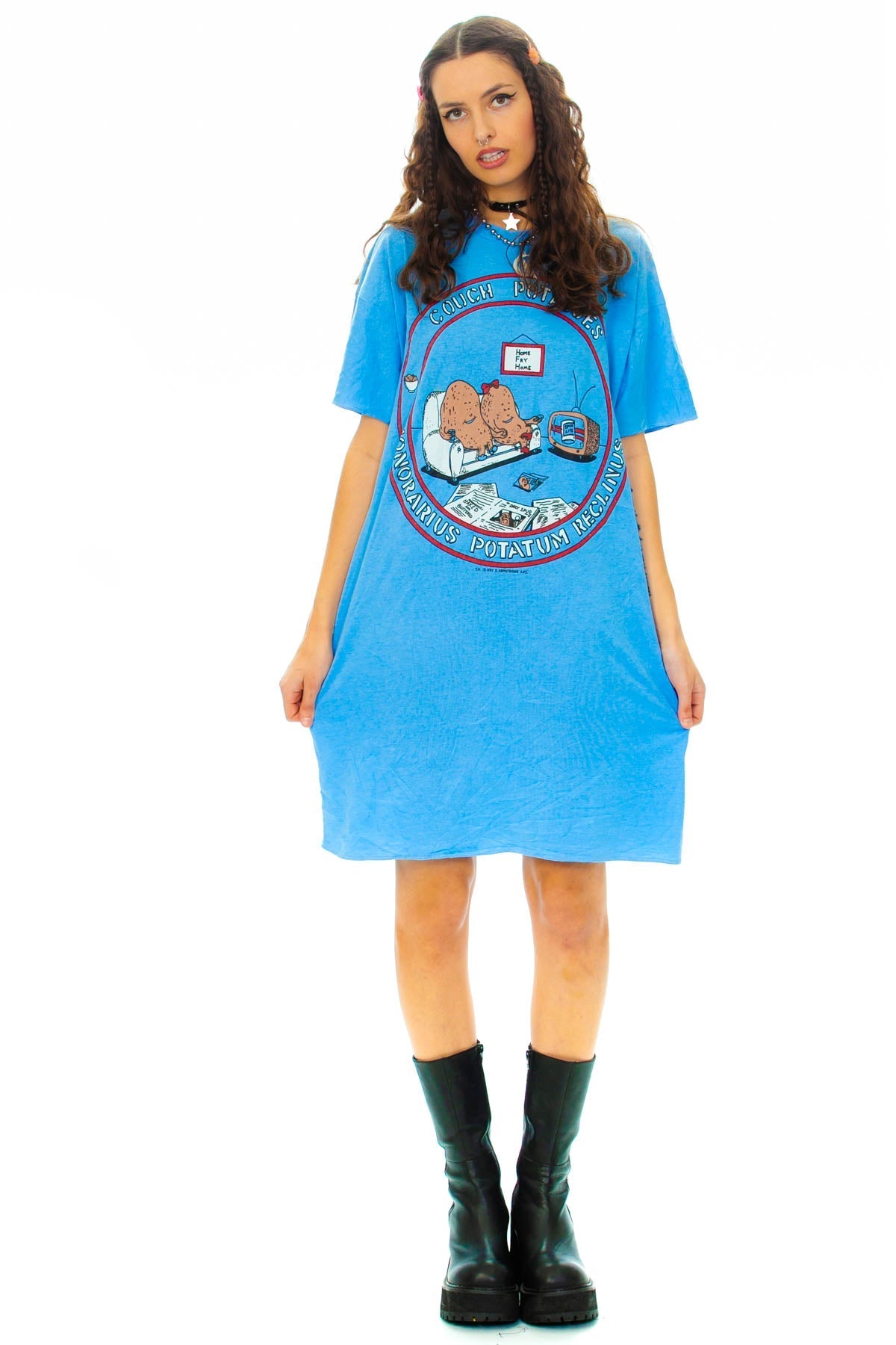 Hilarious dated 1987 couch potato t-shirt, extra long for extra lounging! Be an honorary member today!