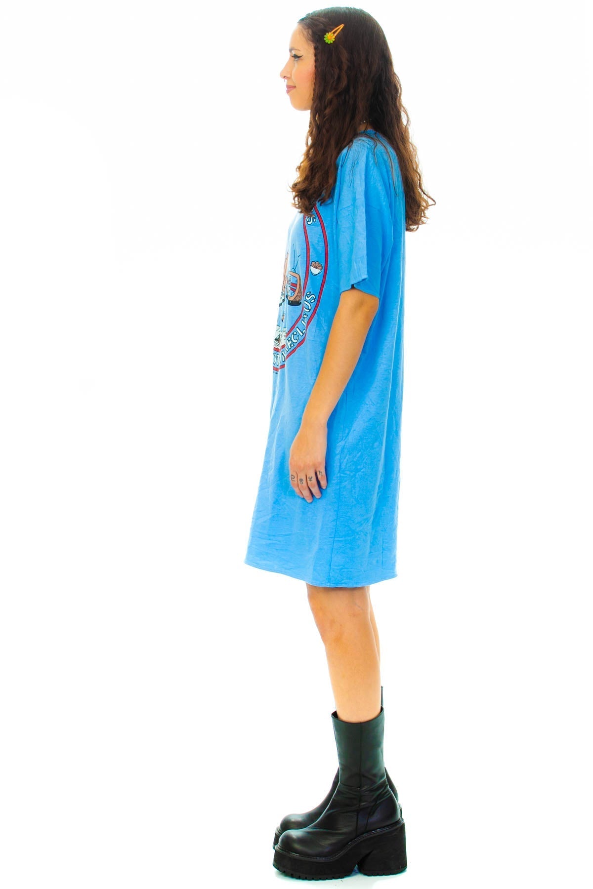 Our model Camila is 5'9" with 34" bust, 26" waist, and 38" hips and usually wears size S/M. This item was not pinned on her and it would best fit up to a size XL.