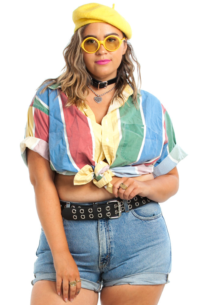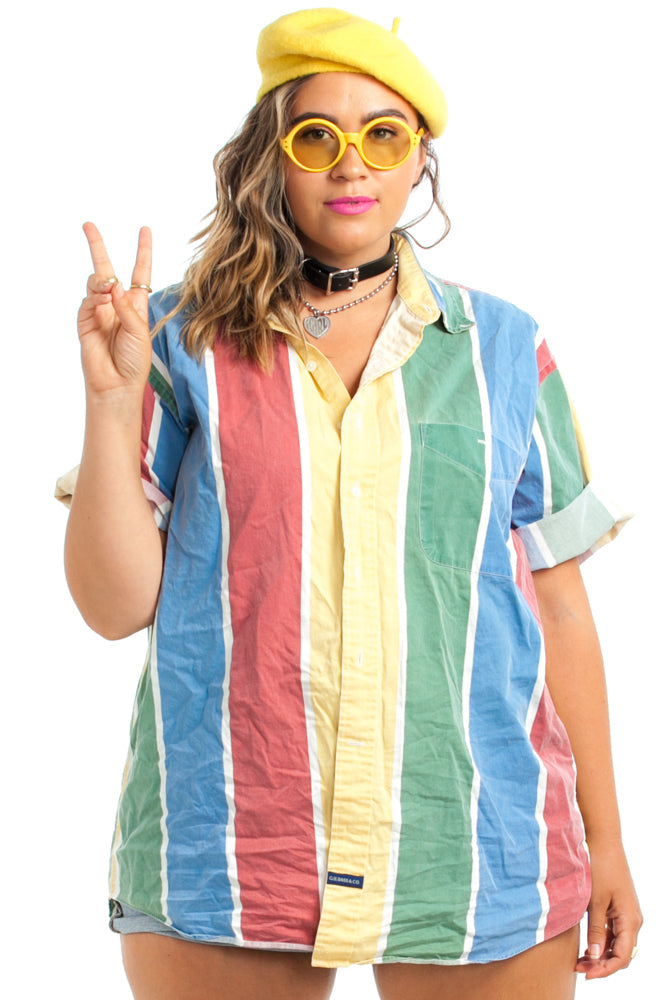 Vintage 80's Rainbow-Stripe Button-Up