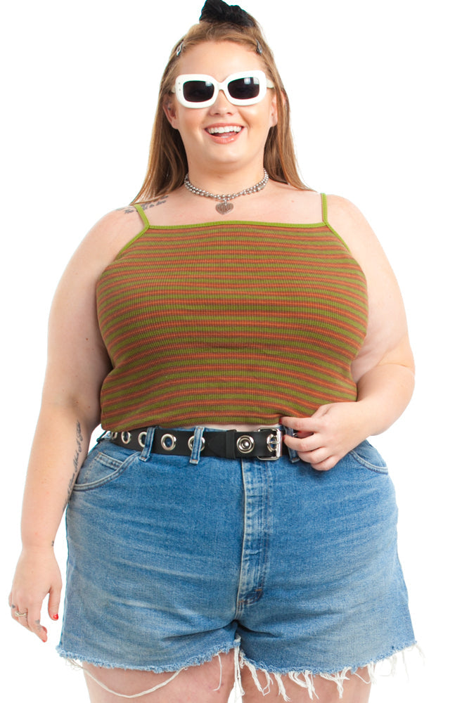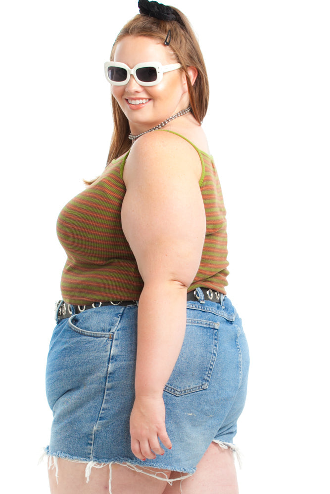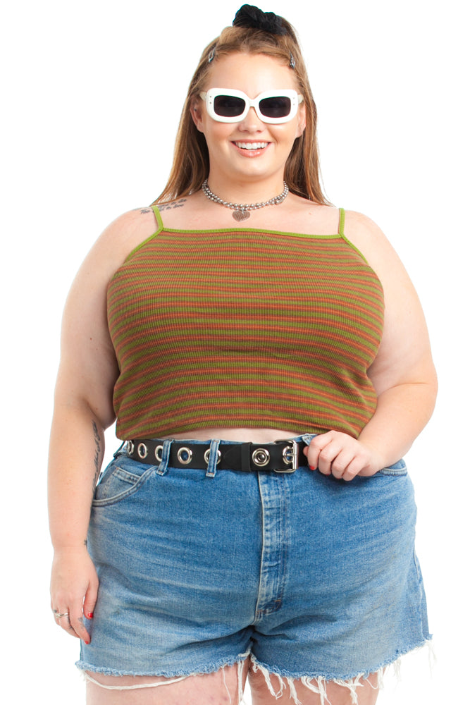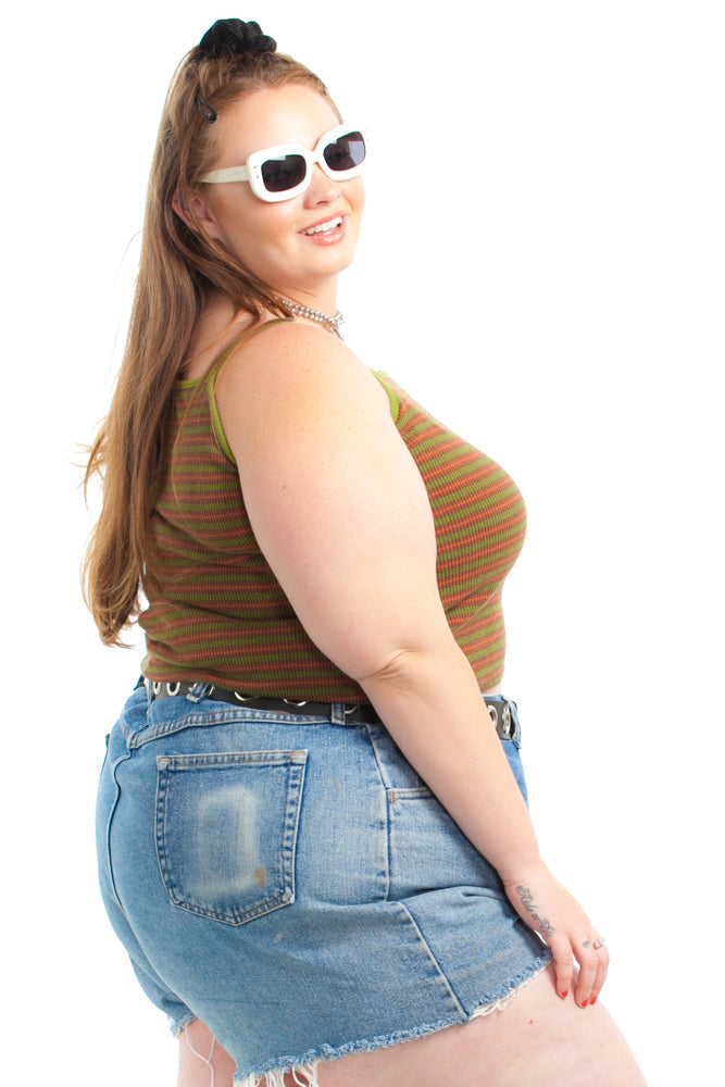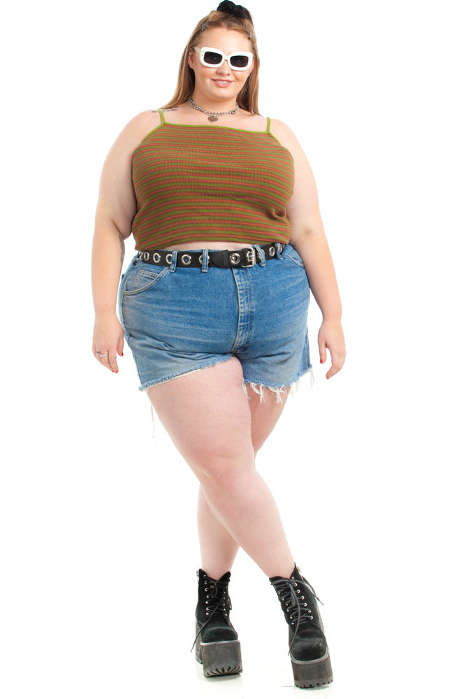 Our model Hayley is 5'5" with 45" bust, 44" waist, and 56" hips; she usually wears size 2X/3X. This item was not pinned on her and would best fit a size XL, 2X or 3X.