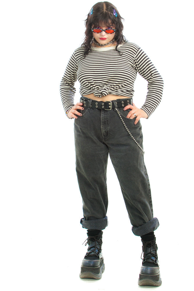 Classic black worn in jeans with classic mom fit!