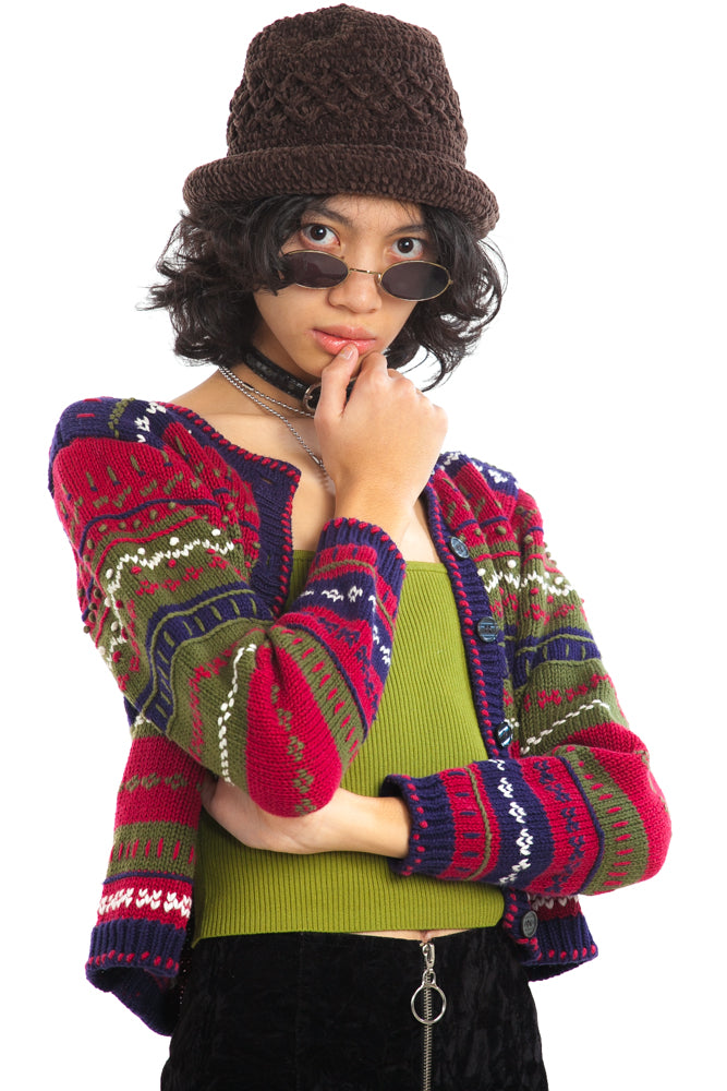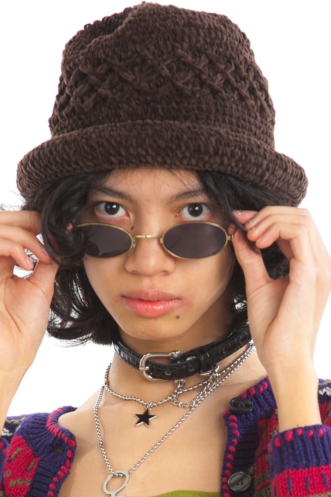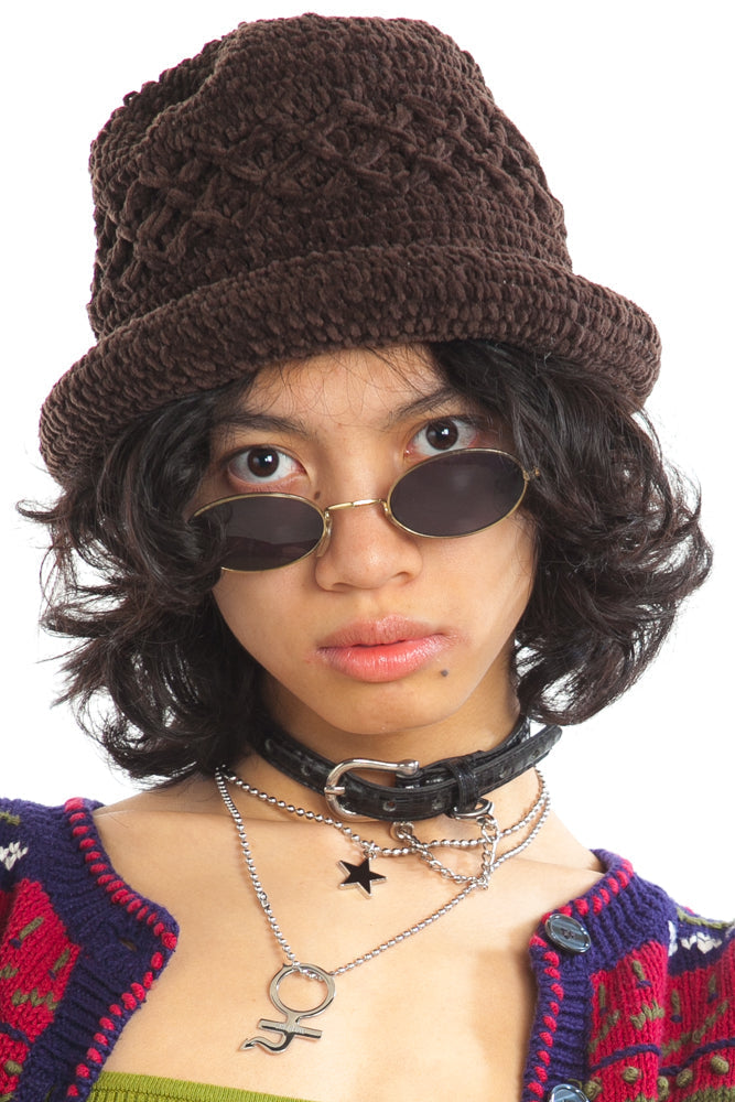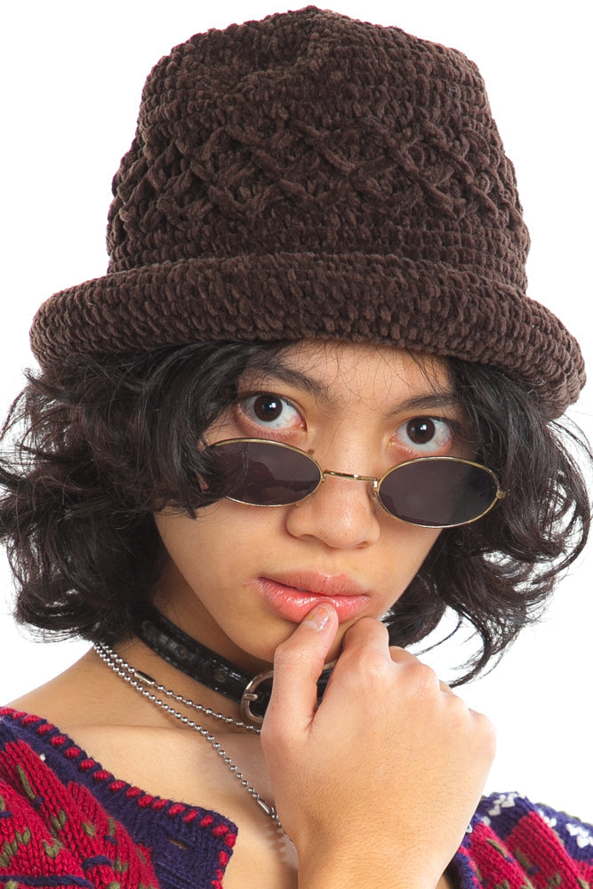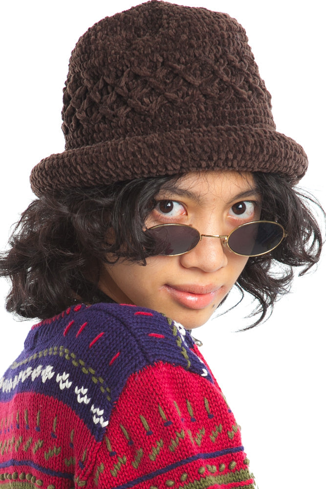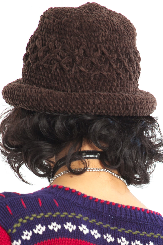 DetailsBrown knit cap with rolled edge! Criss cross design knit in around "band" area