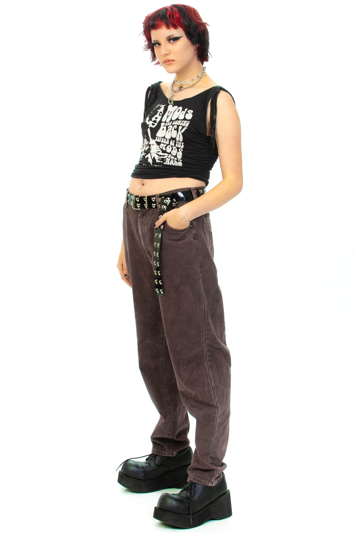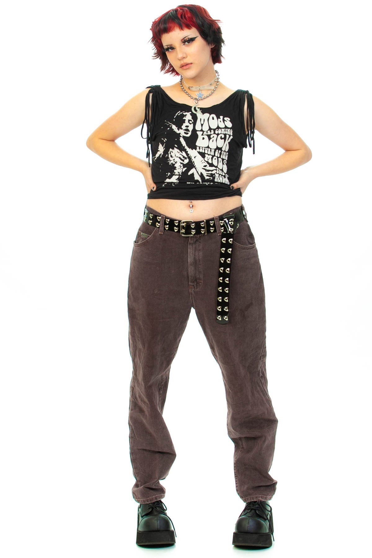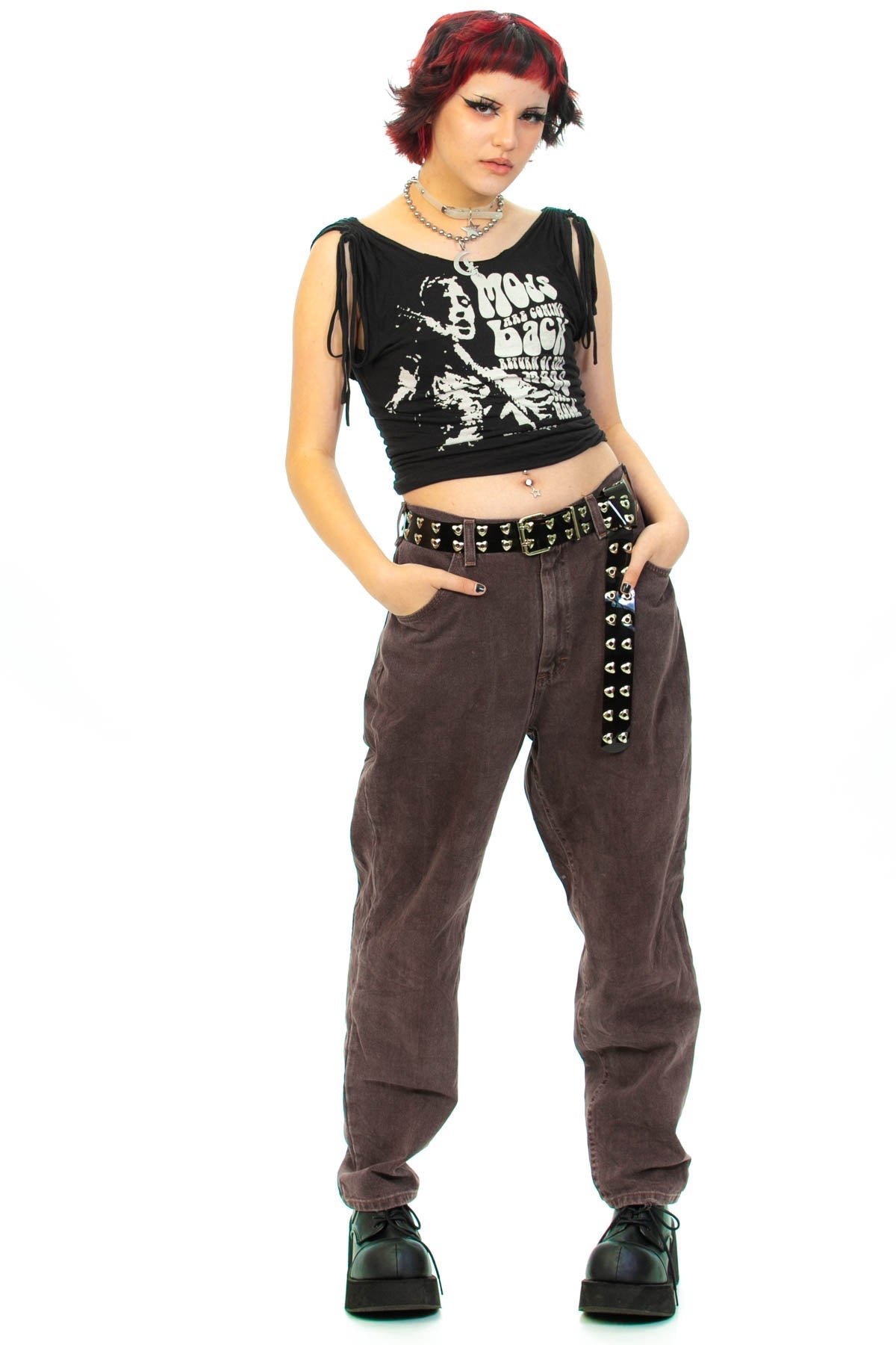 Our model Star is 5'5" with 29" waist, 34" bust, and 36" hips and usually wears size S. This item was not pinned on them and would best fit a size M at mid rise and a size L at a high natural waist.