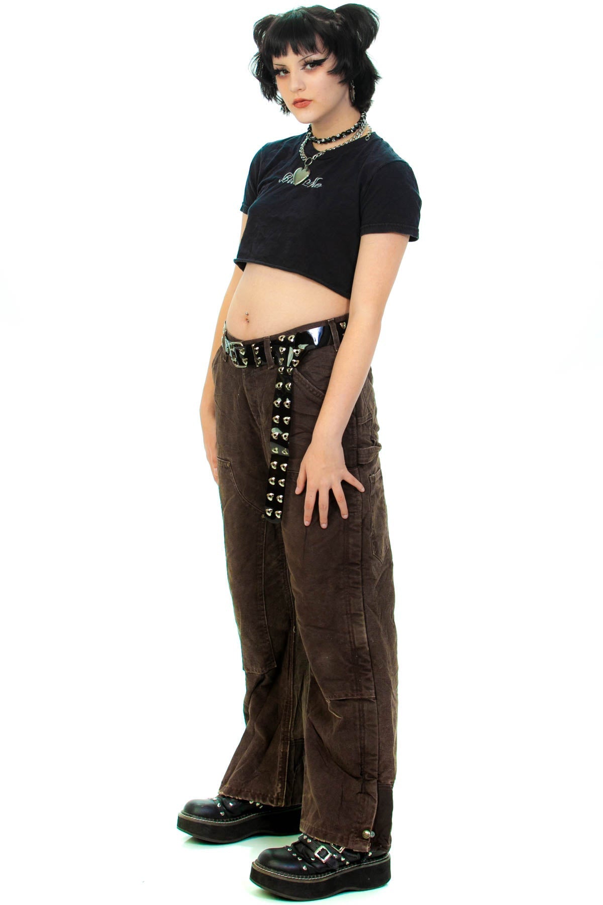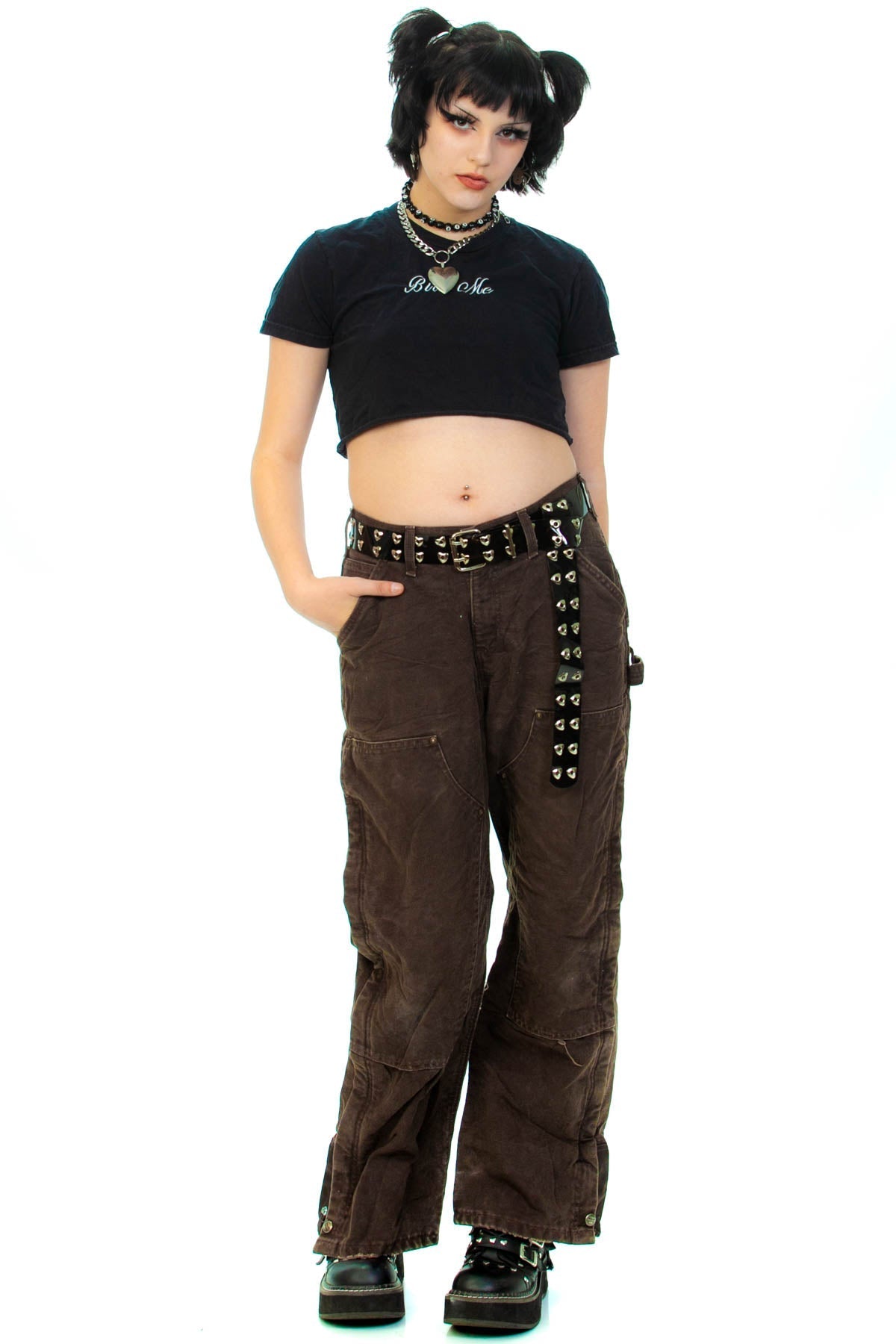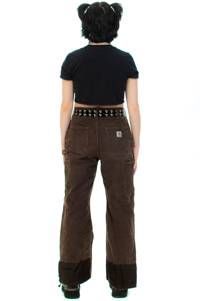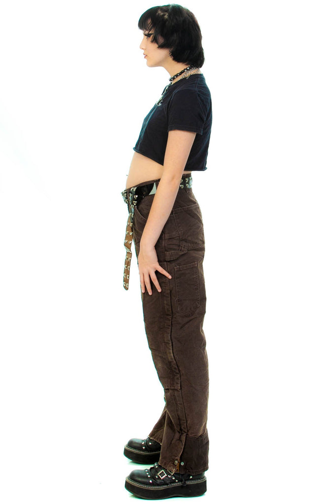 Dark brown Carhartt carpenter pants with insulated lining and front button closure! These baby's are sturdy!