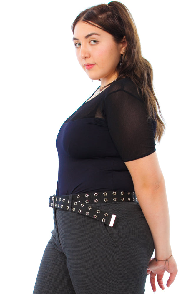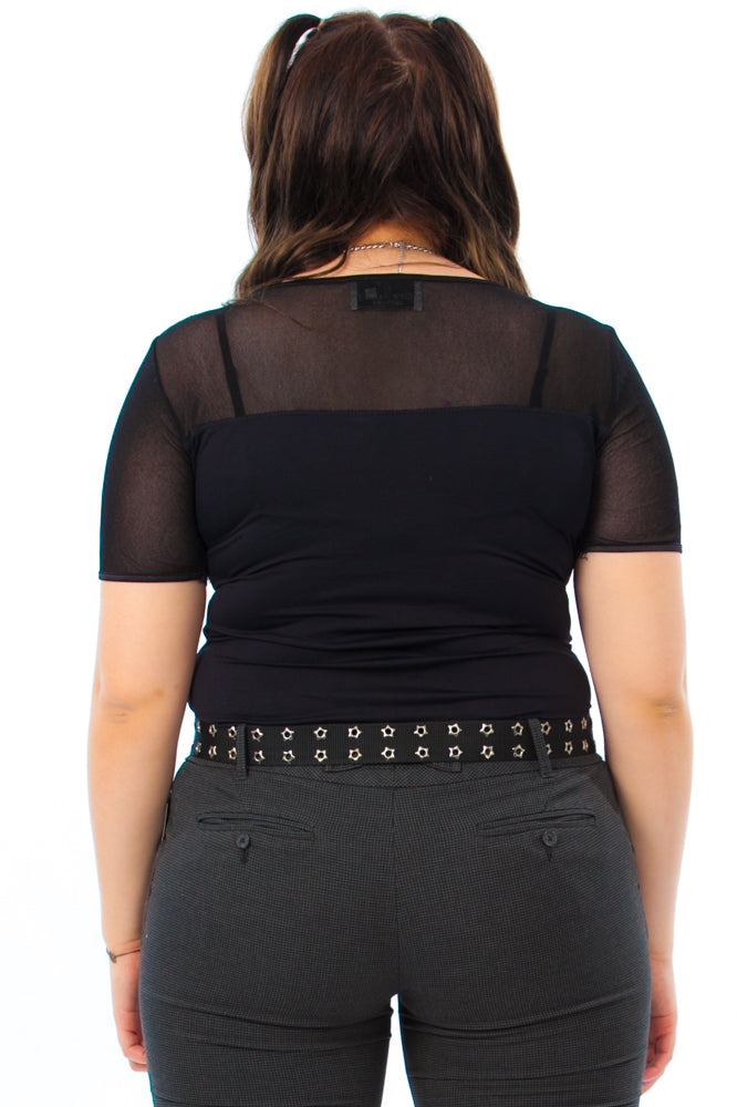 Stretch black bodysuit with snap crotch! Mesh inset.