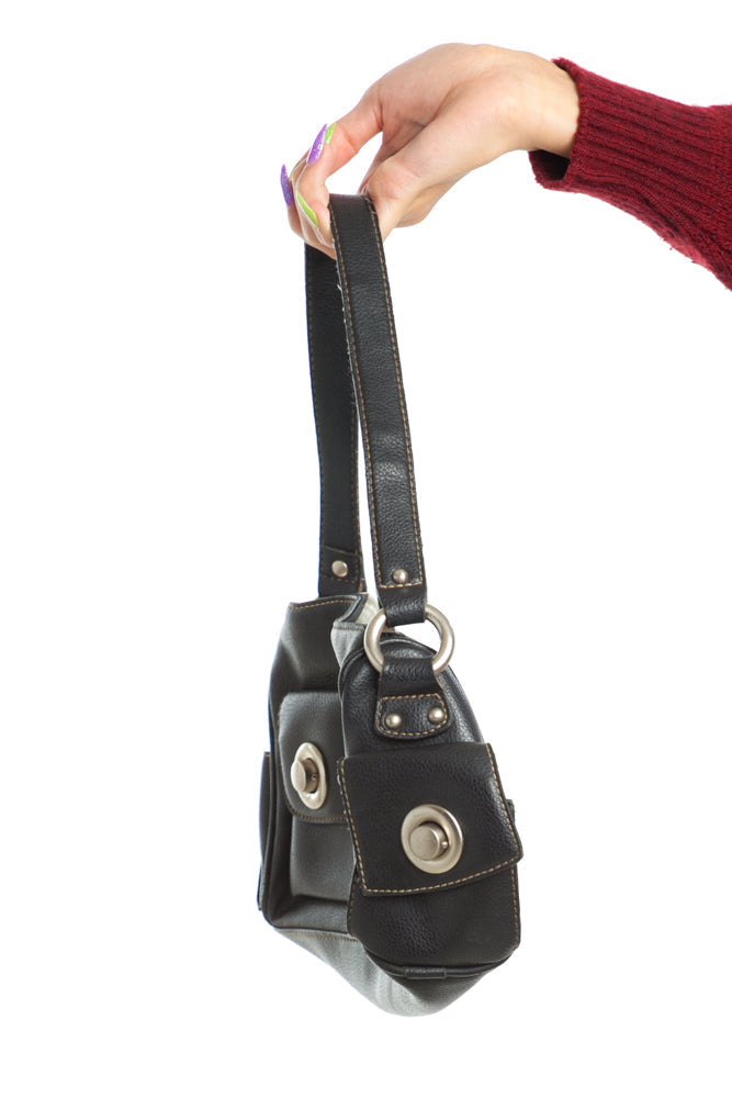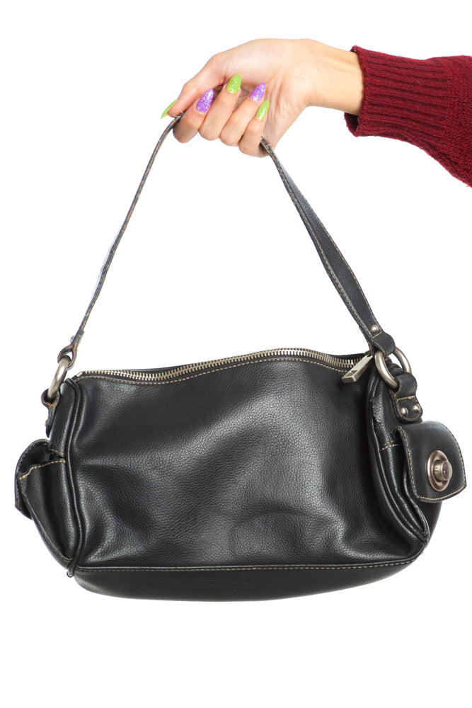 Black leather purse with heavy duty silver hardware! Marc Jacobs logo embossed on front.