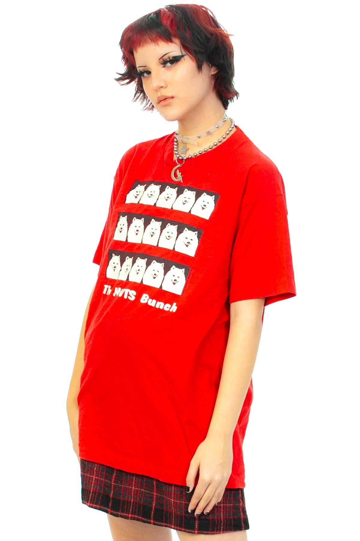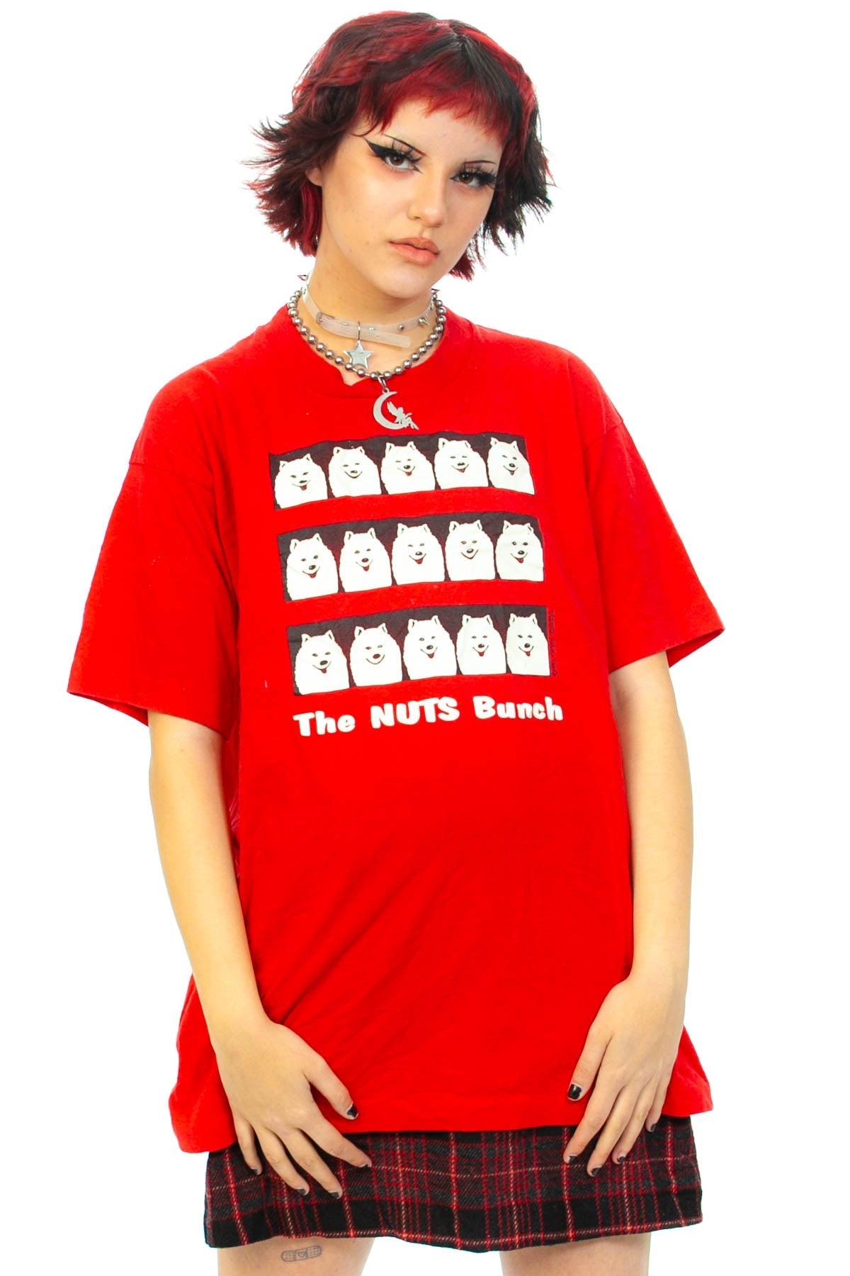 Red 1990 dated t-shirt with cute pups that says "The Nuts Bunch"!