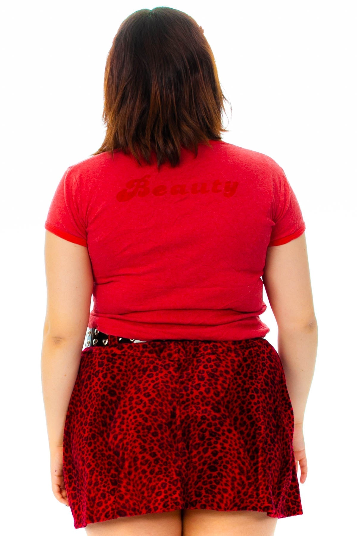 Super cute worn in Betty Boop tee! Has a fitted cut and reads "Beauty" on the back!