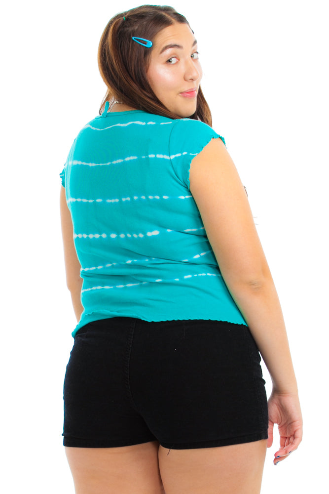 Vintage Y2K Peace BB Tie-Dye Lettuce Edge Baby Tee