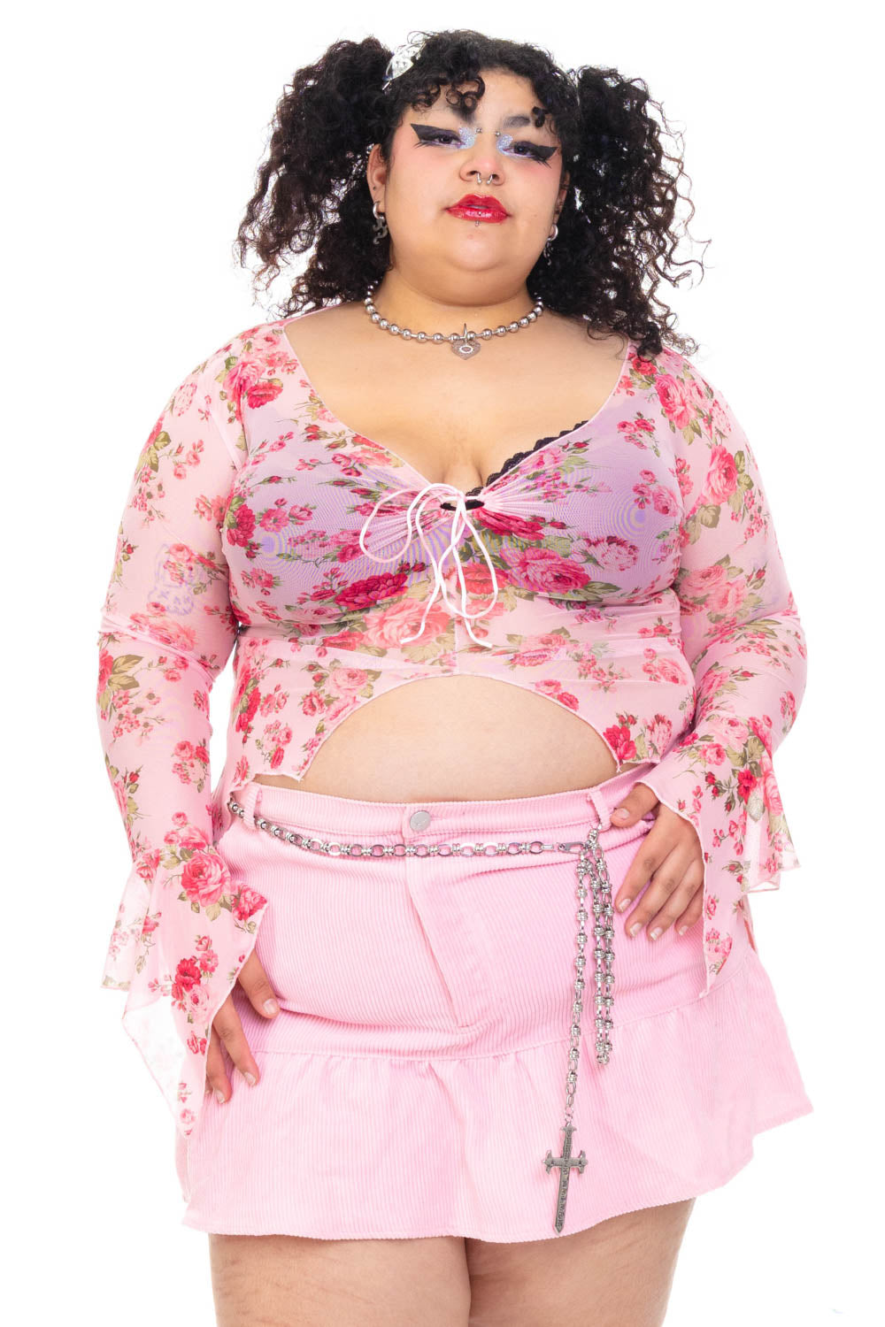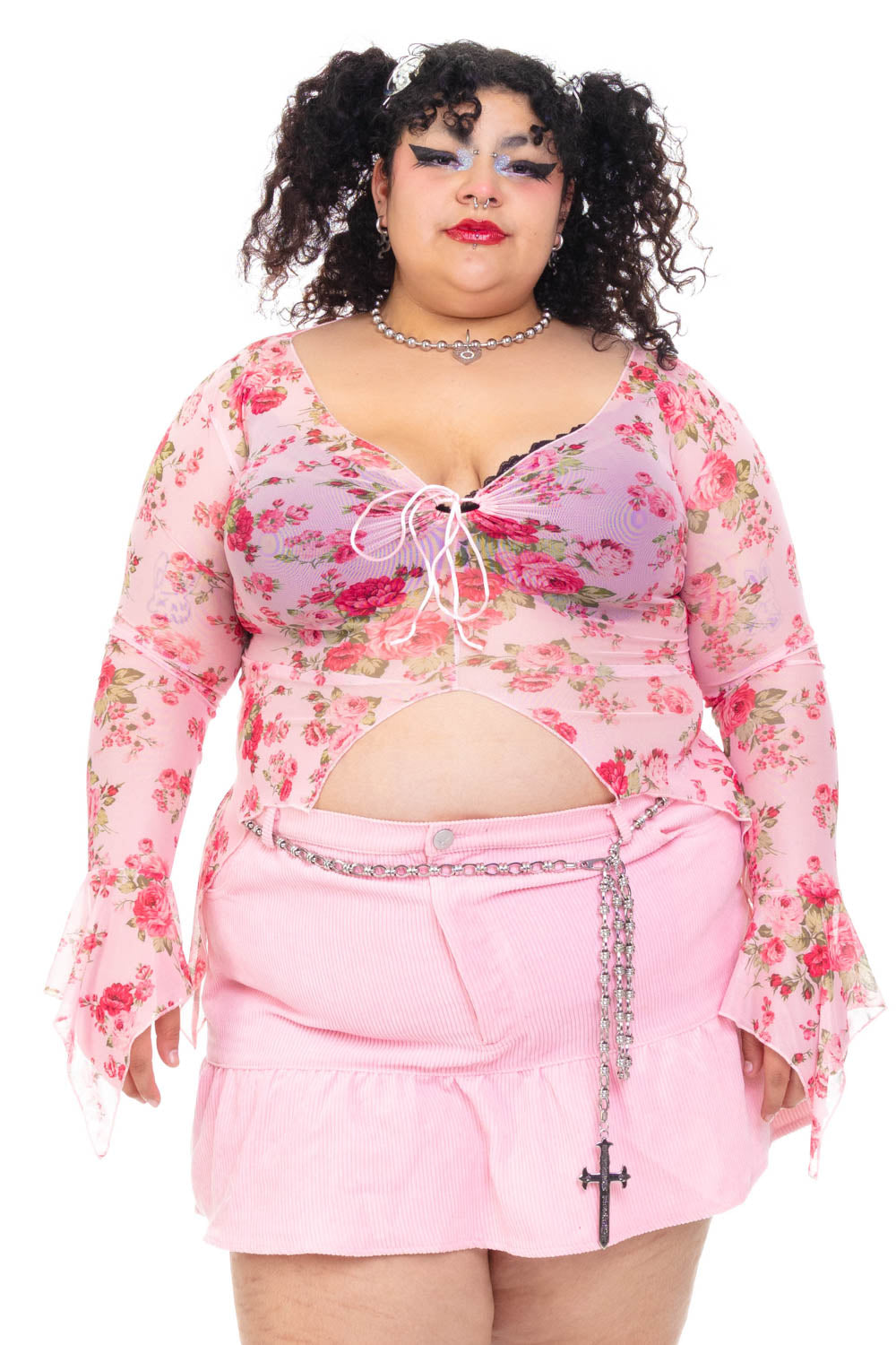 Our model Bella is 5'6" and has a 42" waist, 52" hips, and 43" chest; they usually wear a size 2X/3X and are pictured in a size 3X.