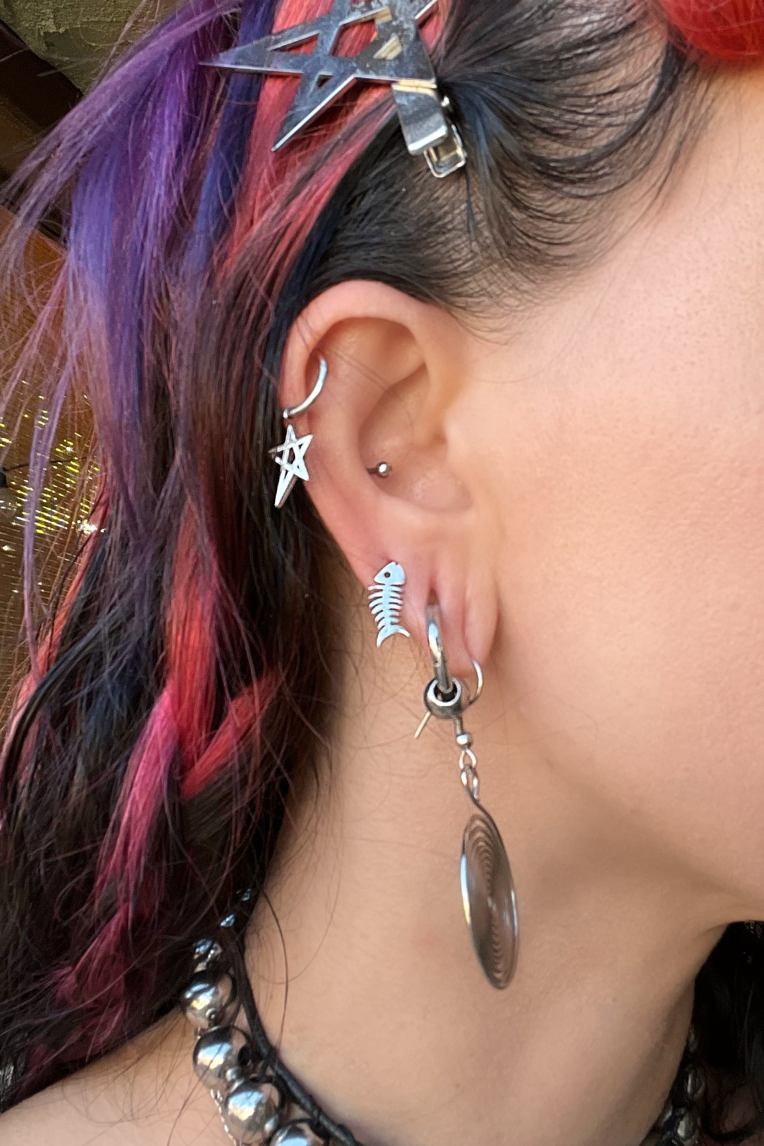 Set of 2 approximately 0.5" diameter earrings with stud back and fishbone design!