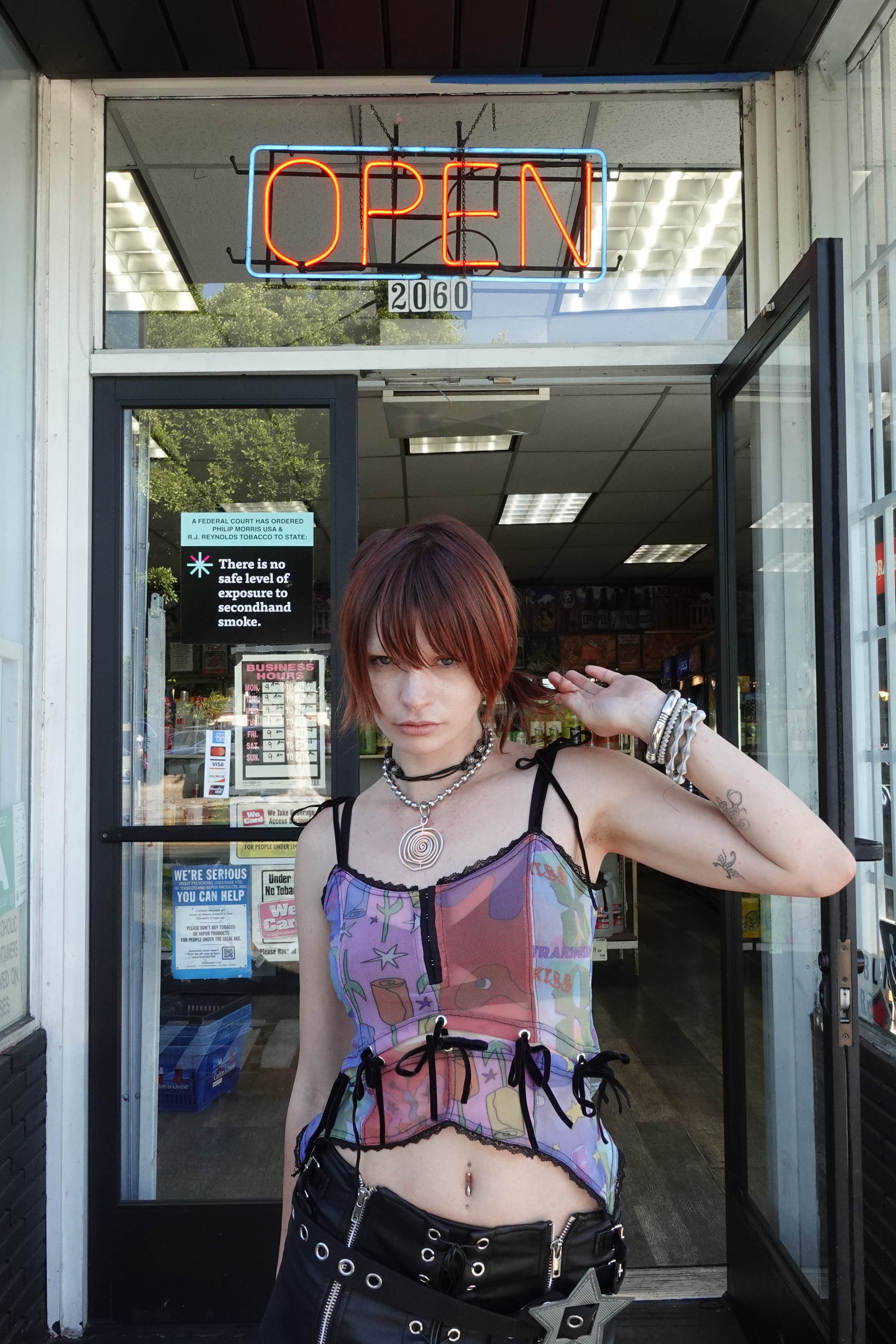Printed mesh camisole with custom hand-drawn artwork! Velvet tie accents.