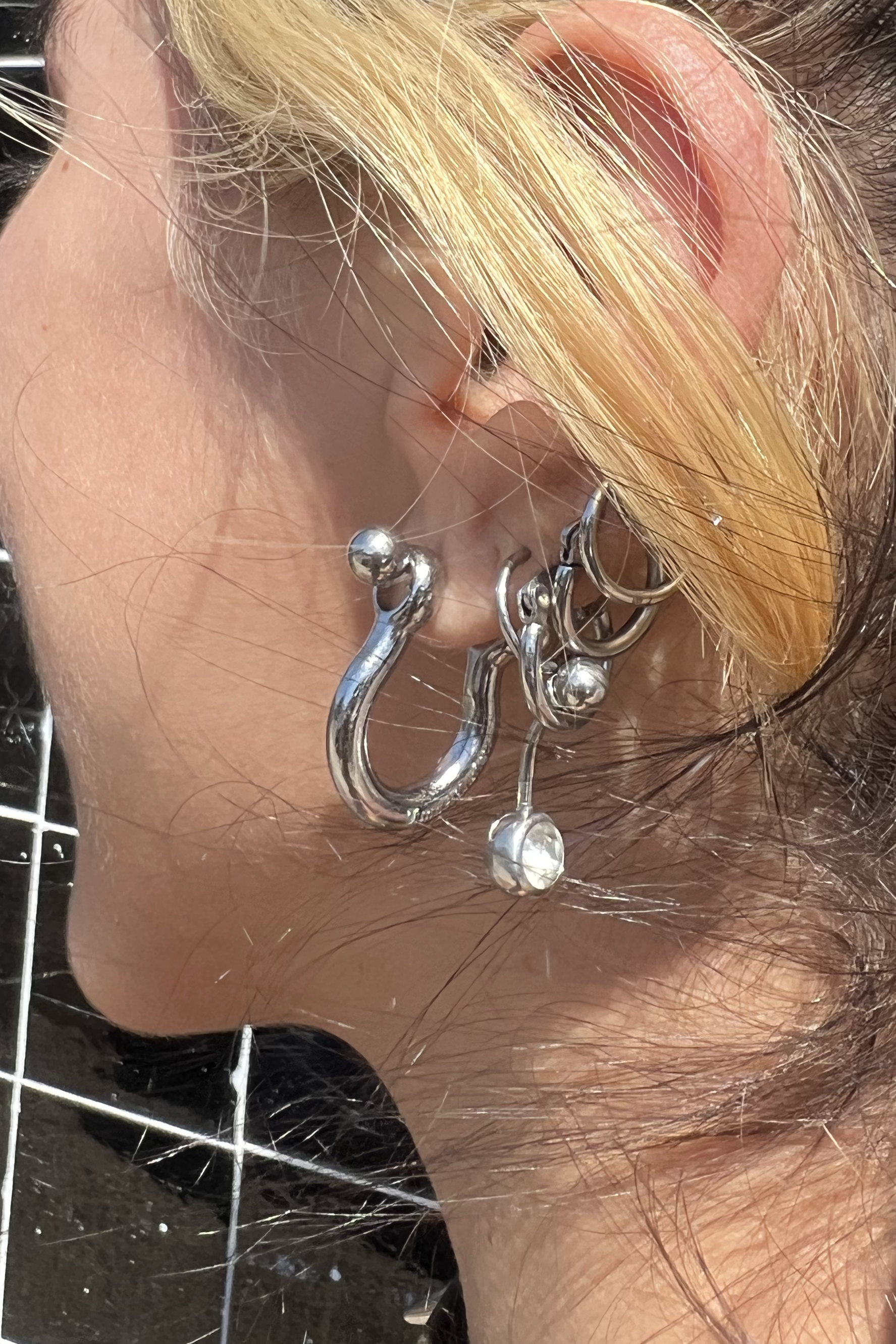 Set of 2 approximately 1" hoop earrings with barbell lock closure and logo etching!