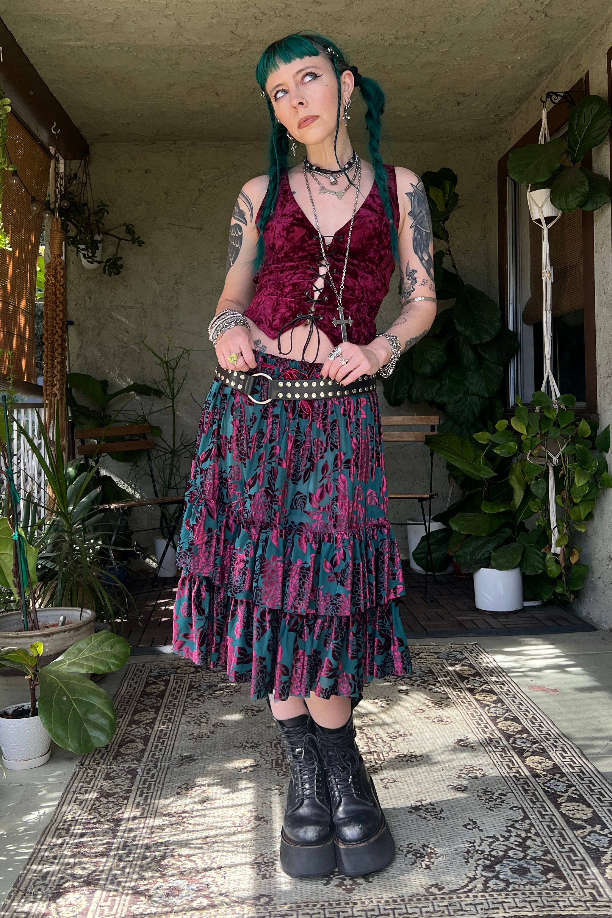 Louisa May Velvet Burnout Ruffle Skirt