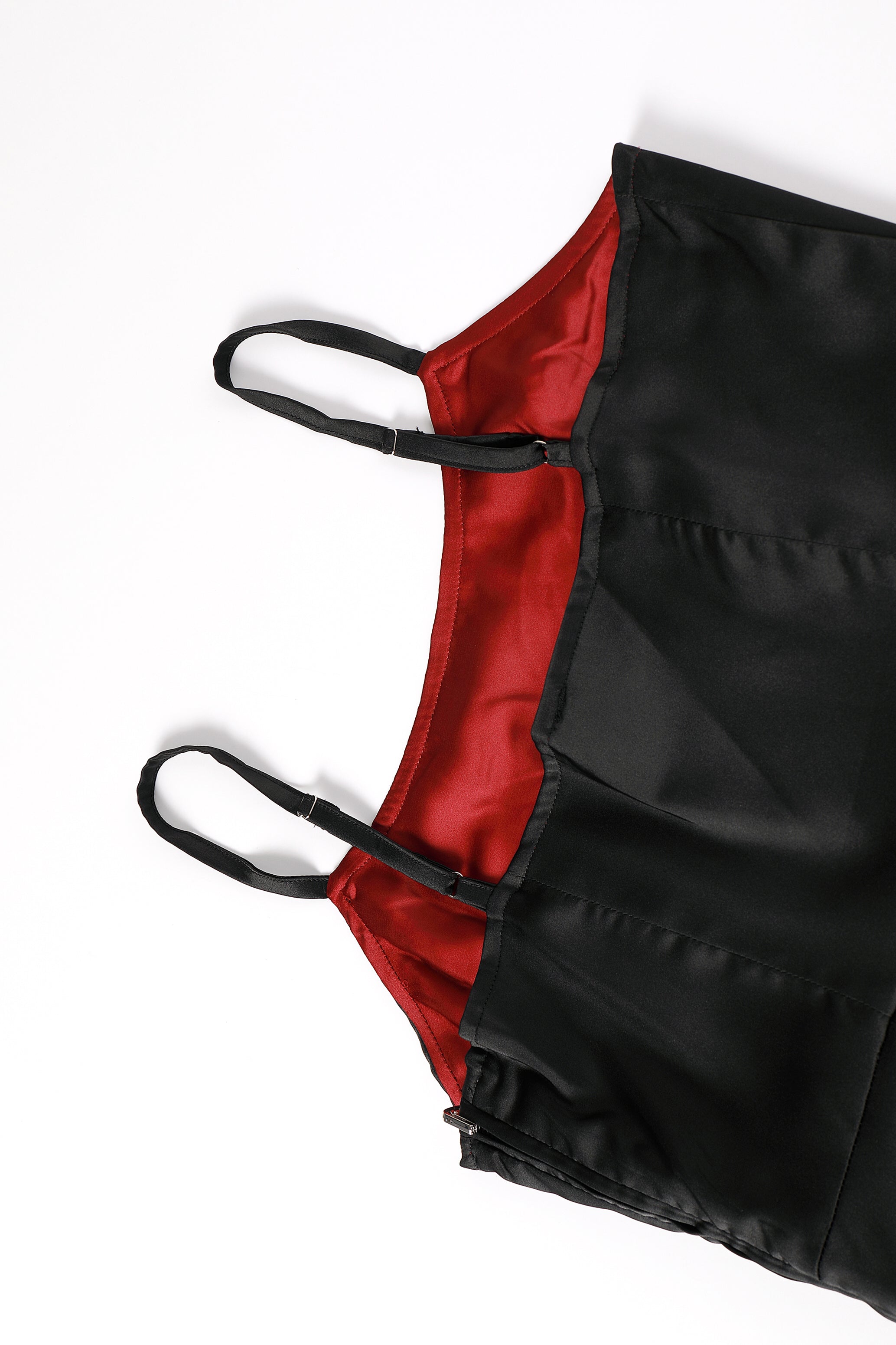 - Reversible satin dress on red side
