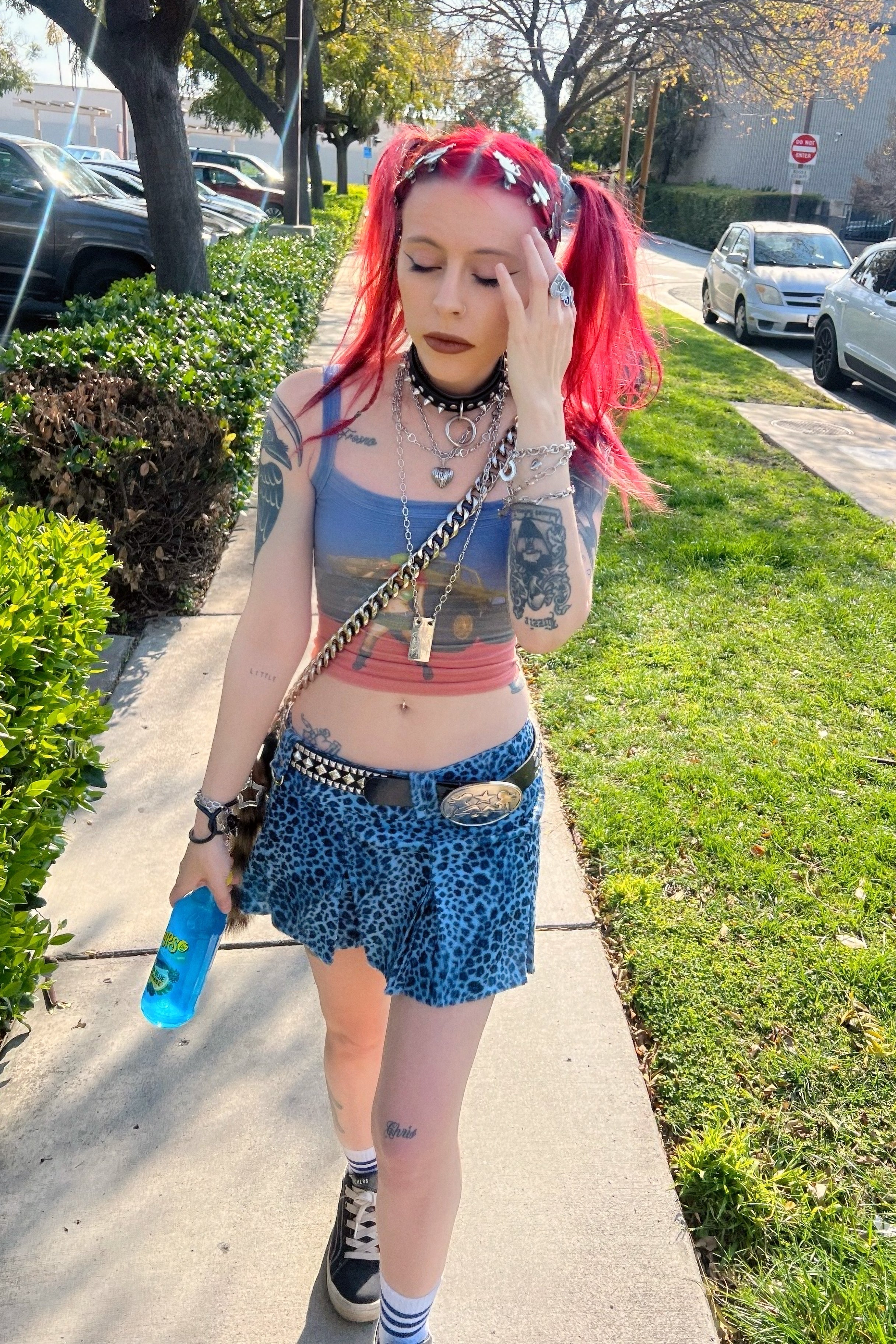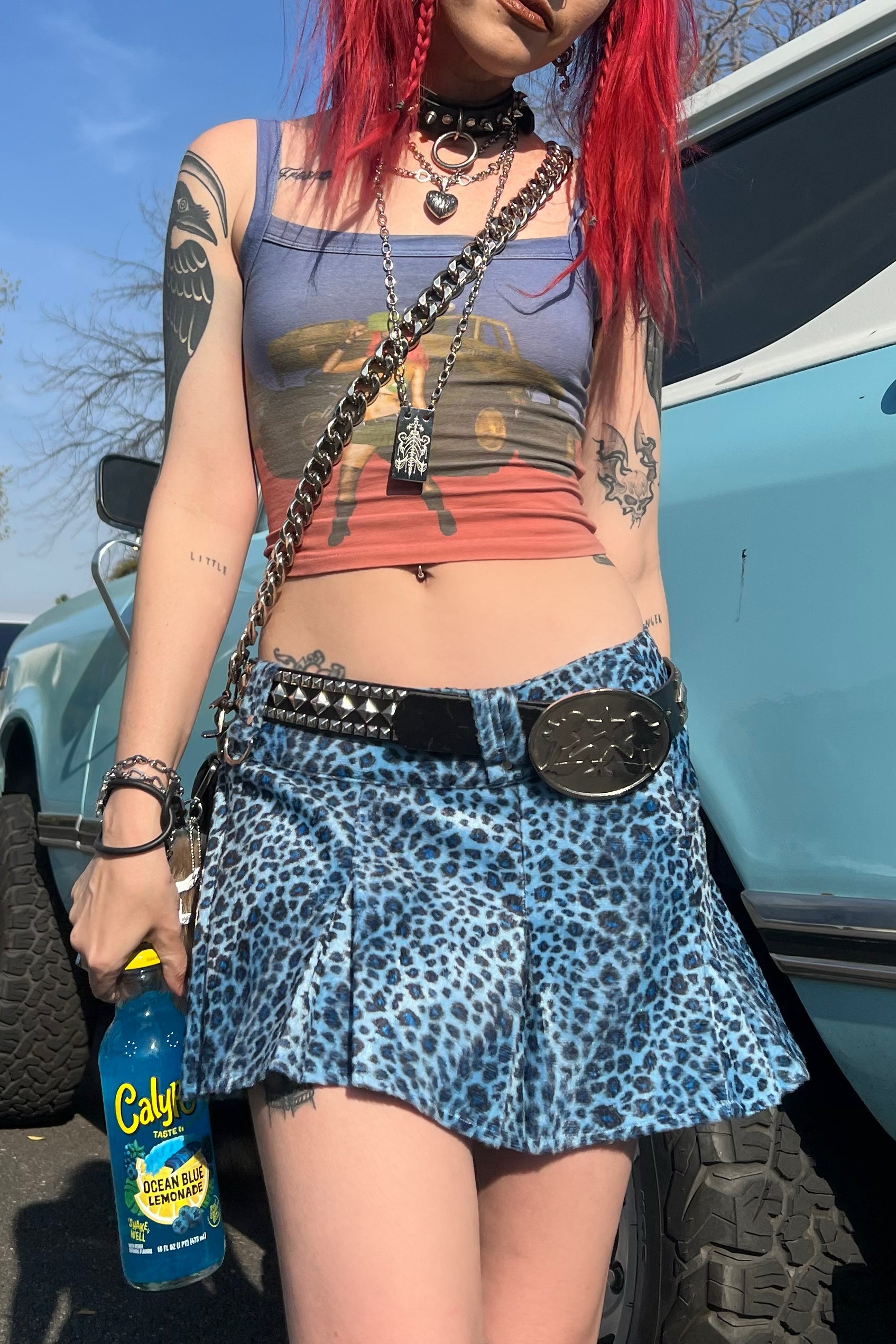 Priscilla Blue Leopard Print Low-Rise Mini Skirt