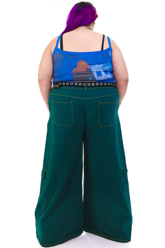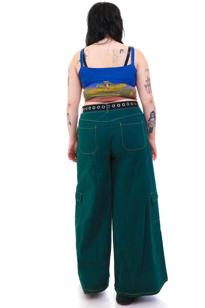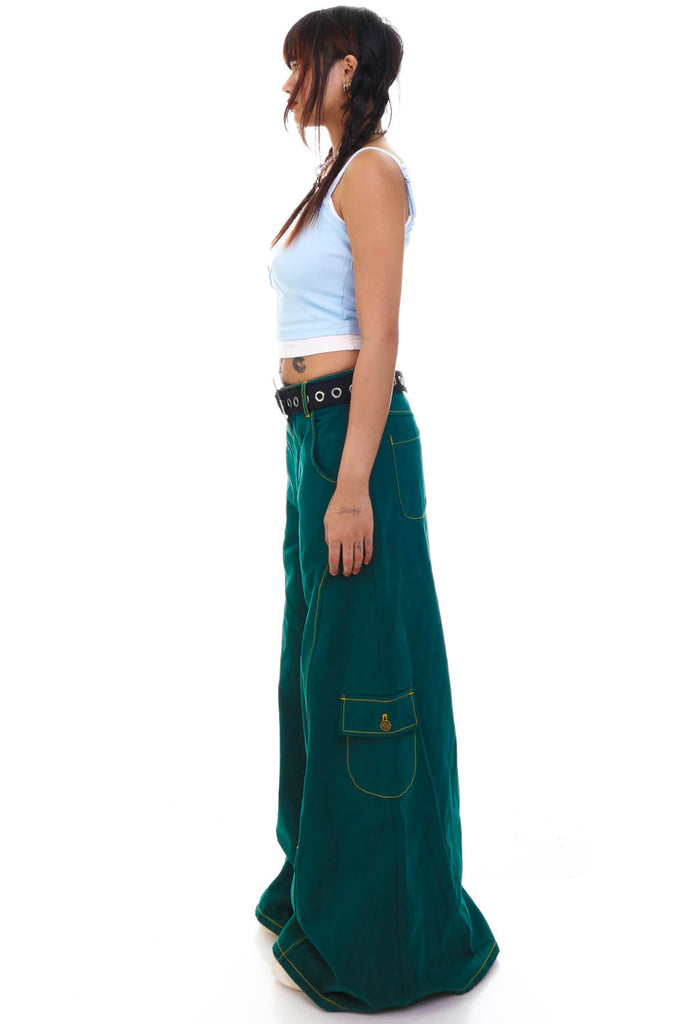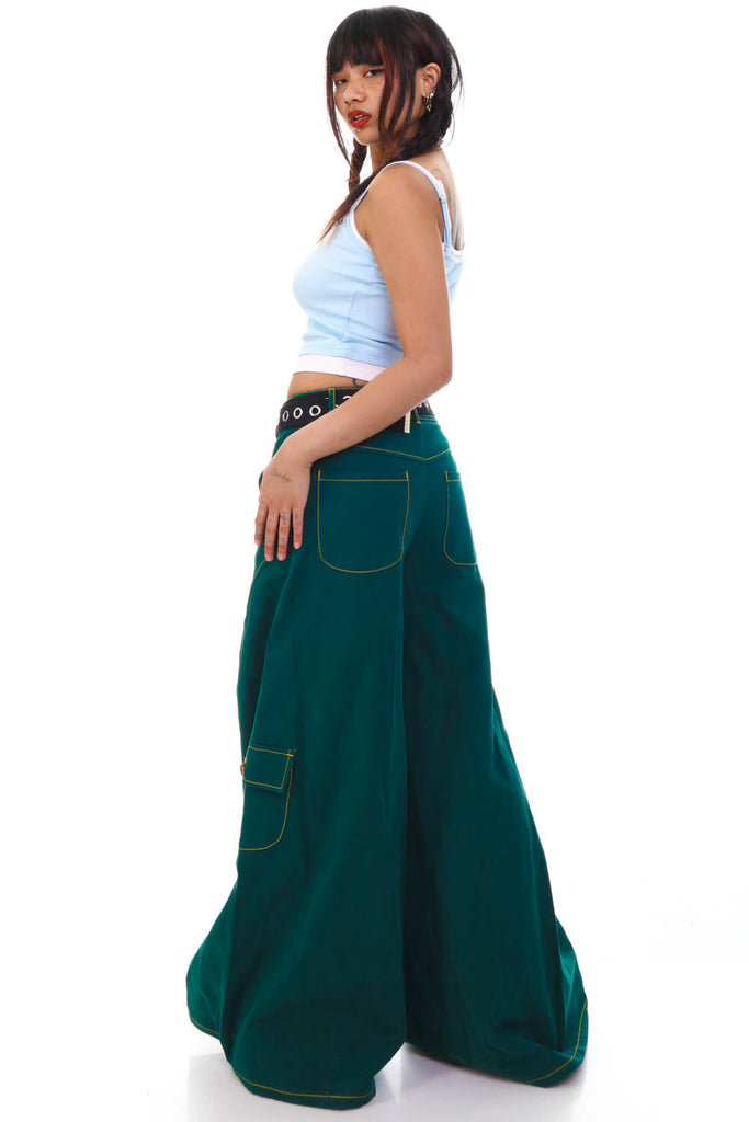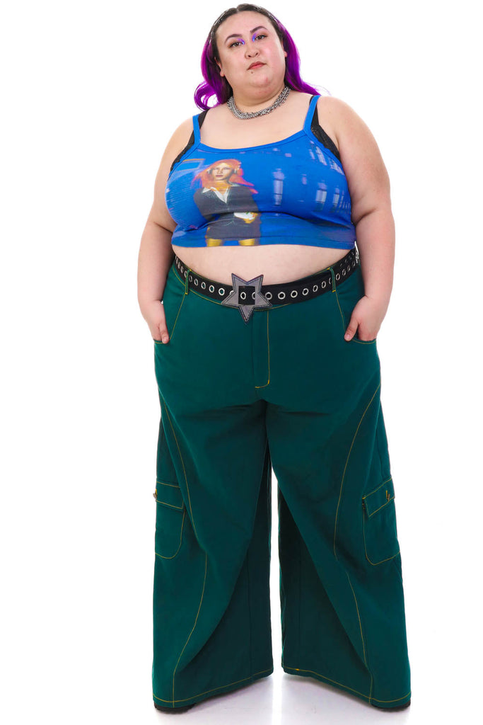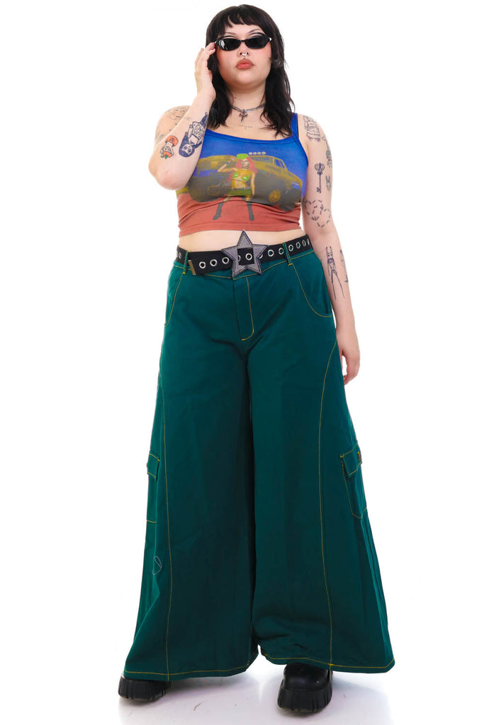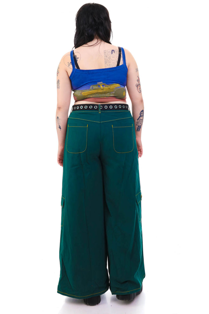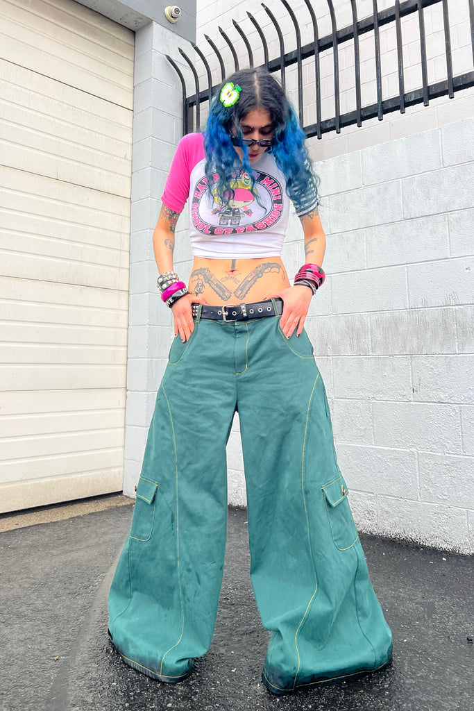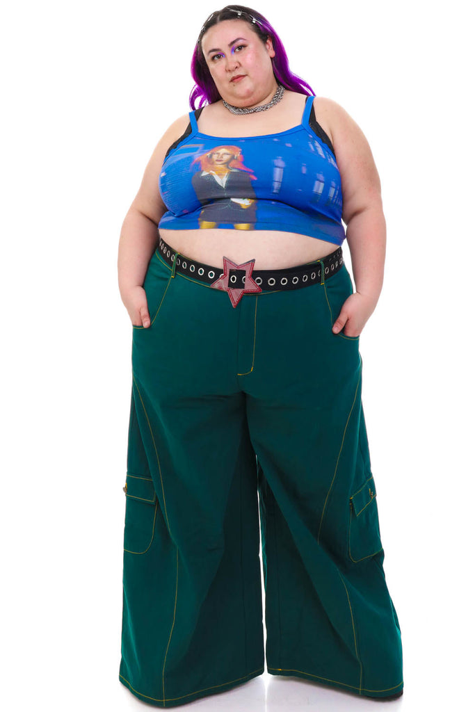 This item was designed to fit low rise and baggy, true Y2K style! There is a little bit of stretch at the waistband due to the bias cut.