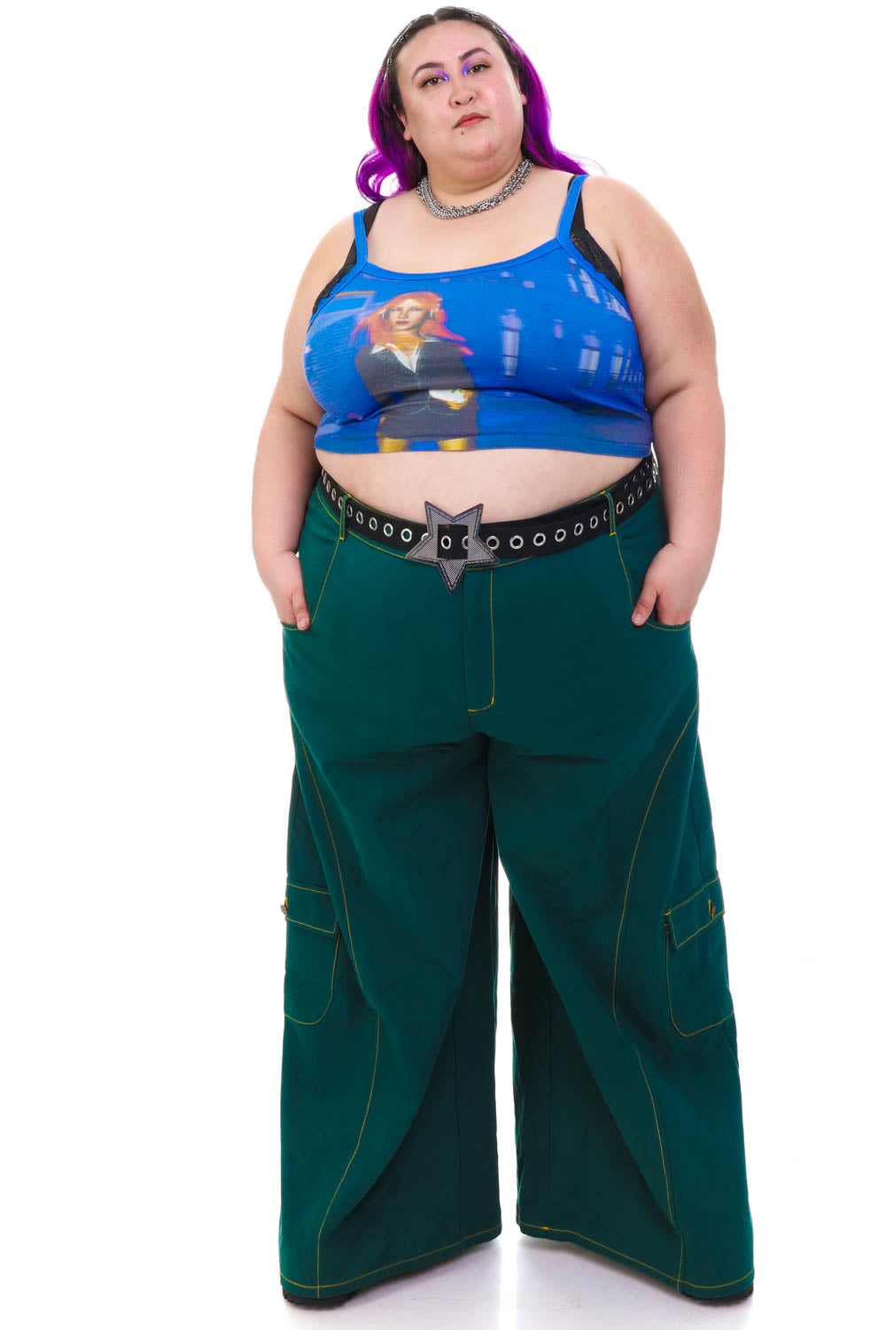 Our model Nova is 5'8" with 36" waist, 47" hips, and 42" bust; she usually wears a size XL/2X and is pictured in a size XL.