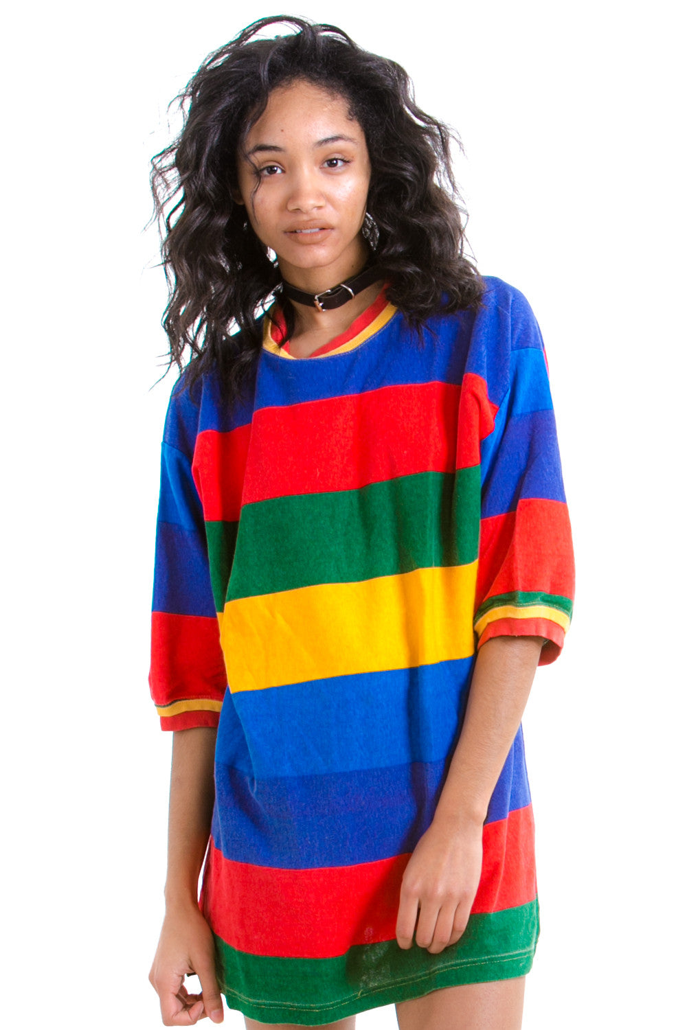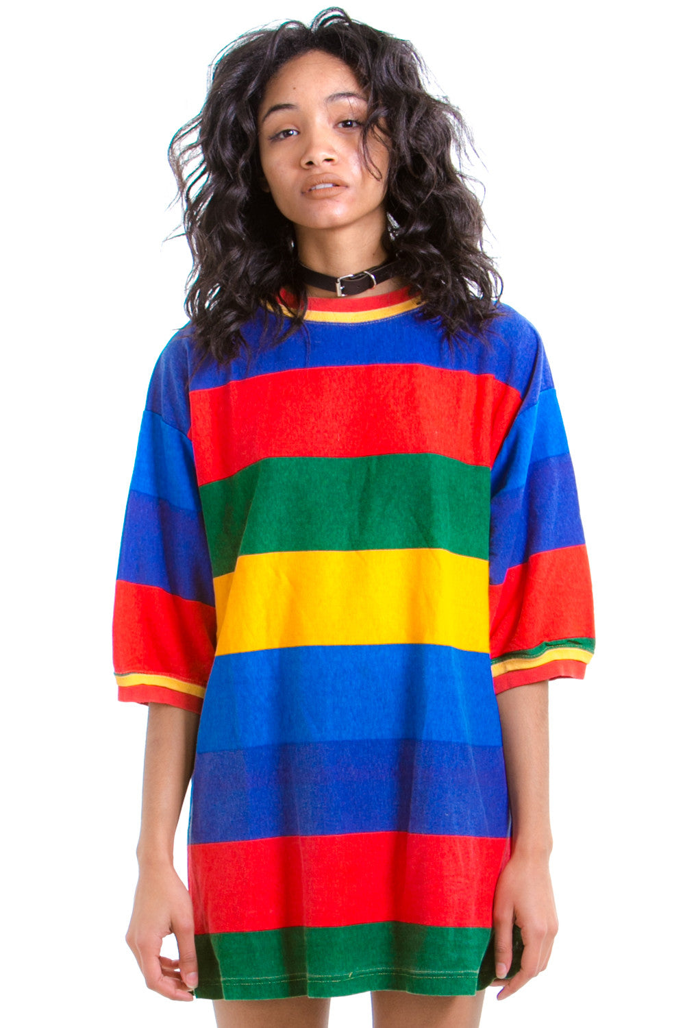 AMAZING rainbow ringer tee with mega stripes allover! SO RAD!