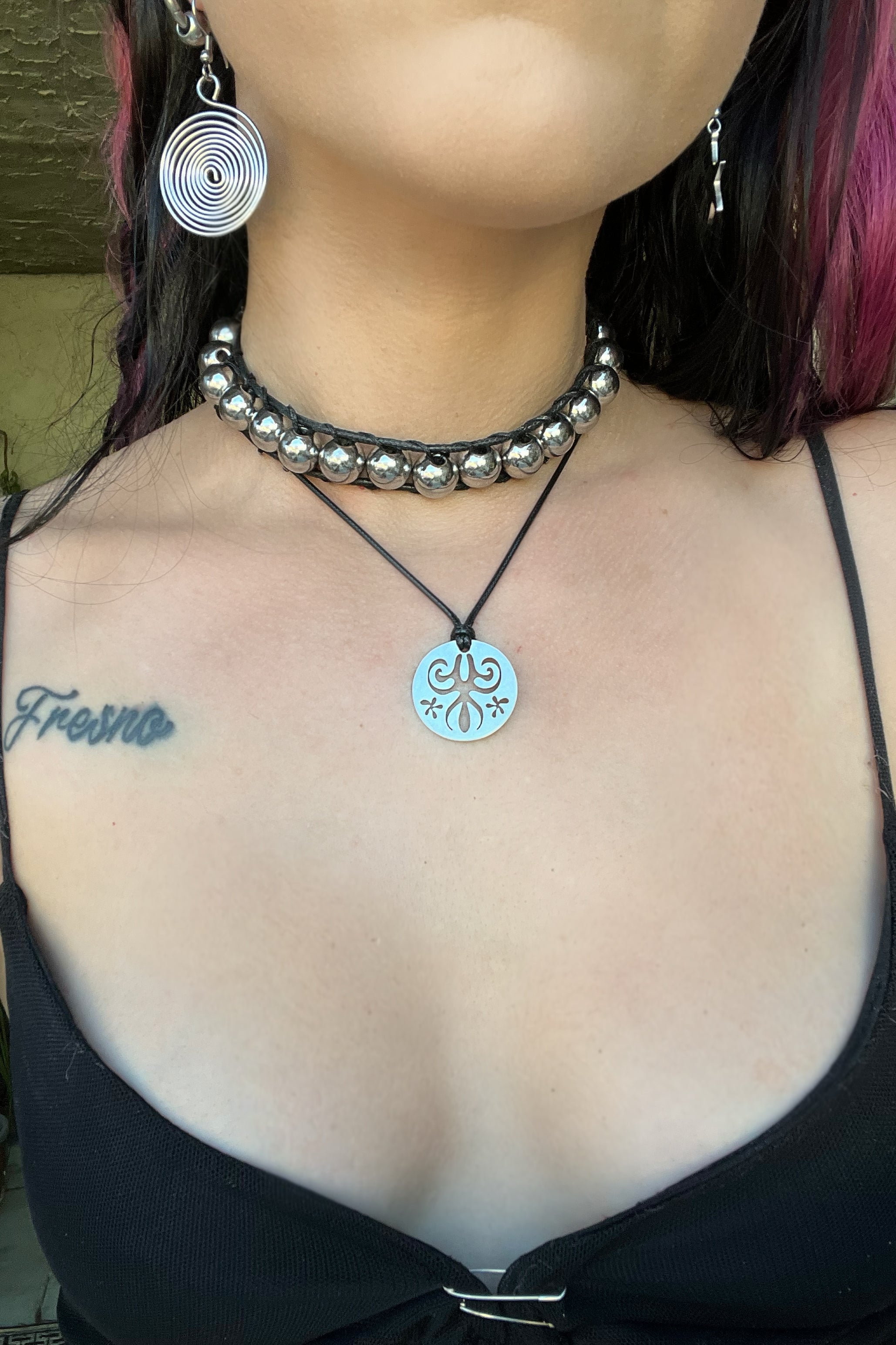 Waxed cord necklace with 1" stainless steel pendant featuring whimsical cutout design!