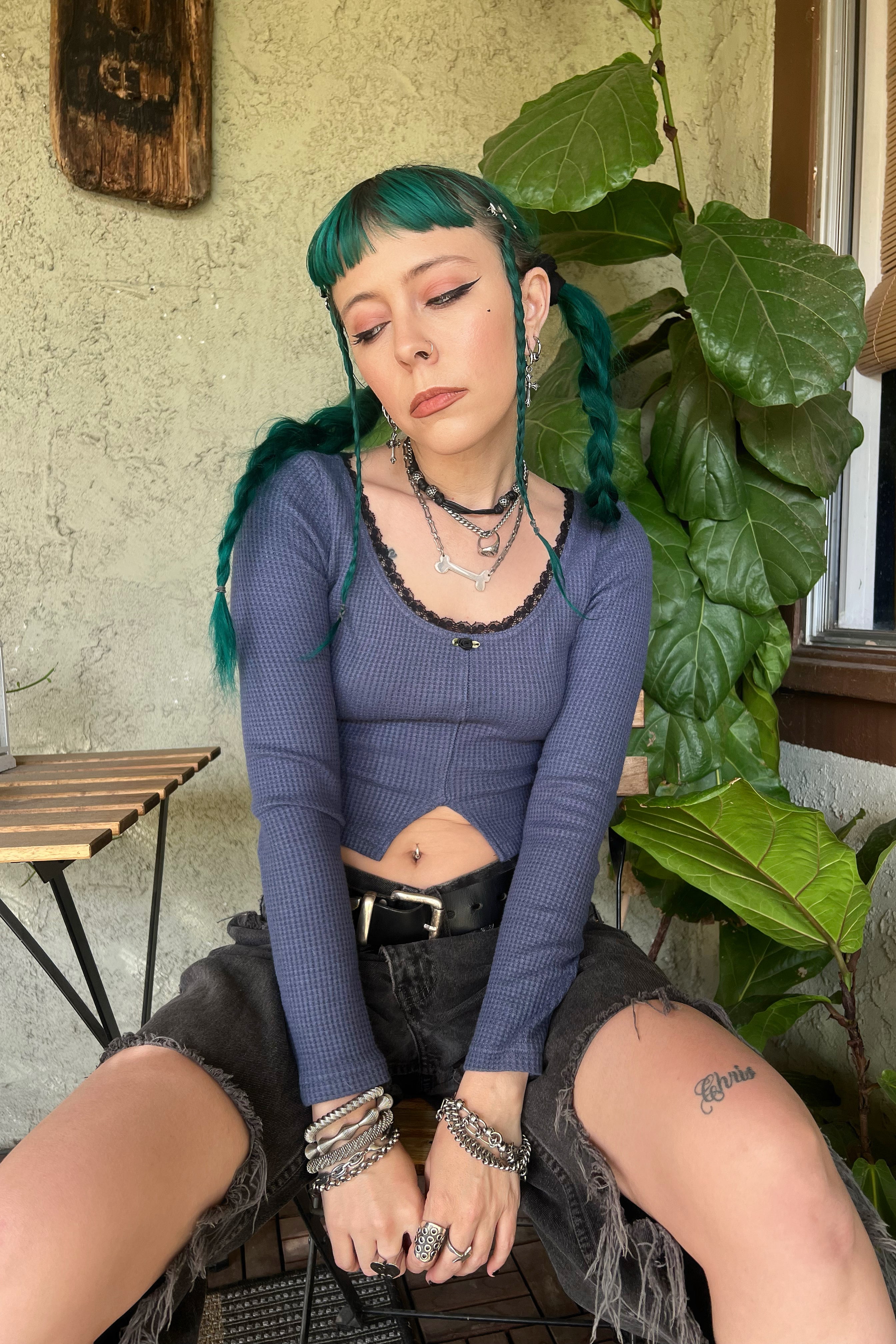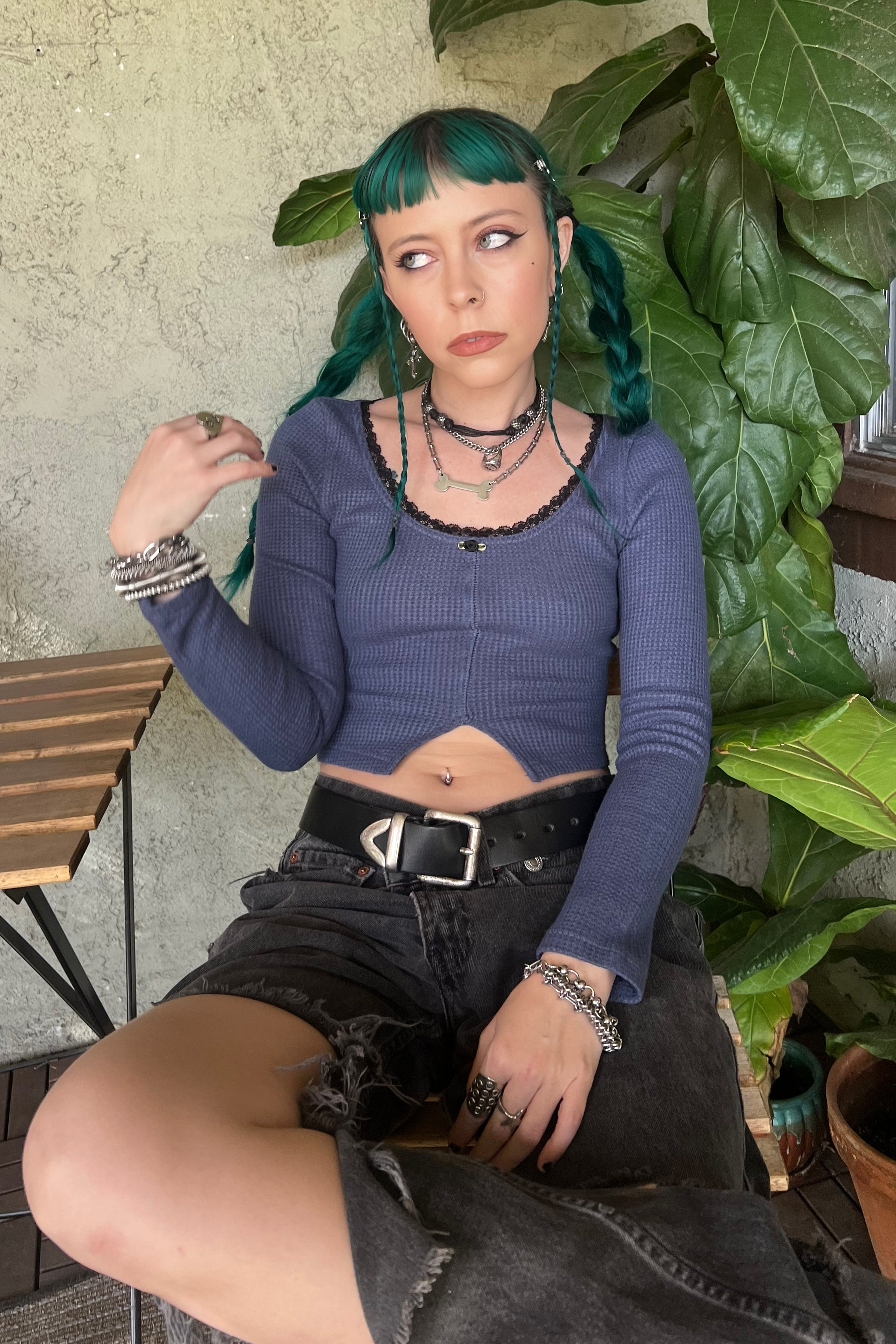 Rosa Blue Lace-Trimmed Thermal Long-Sleever