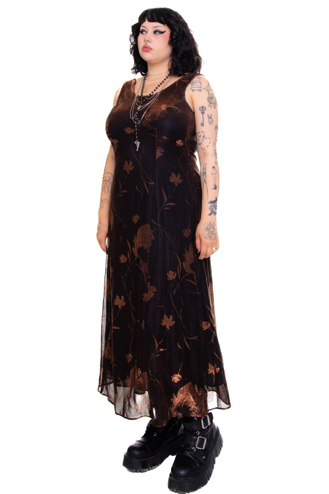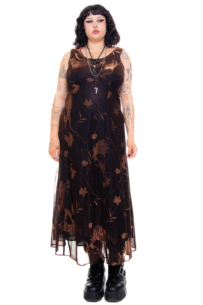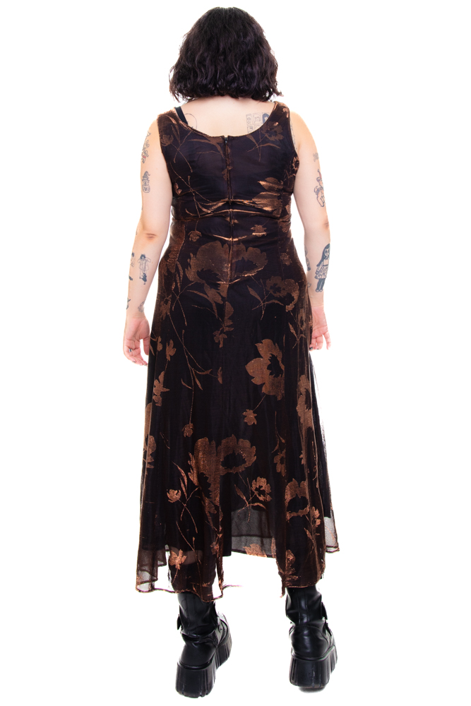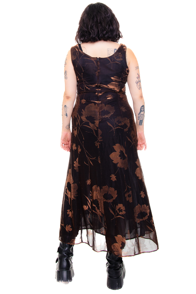 Vintage 80's Copper Metallic Floral Maxi Dress