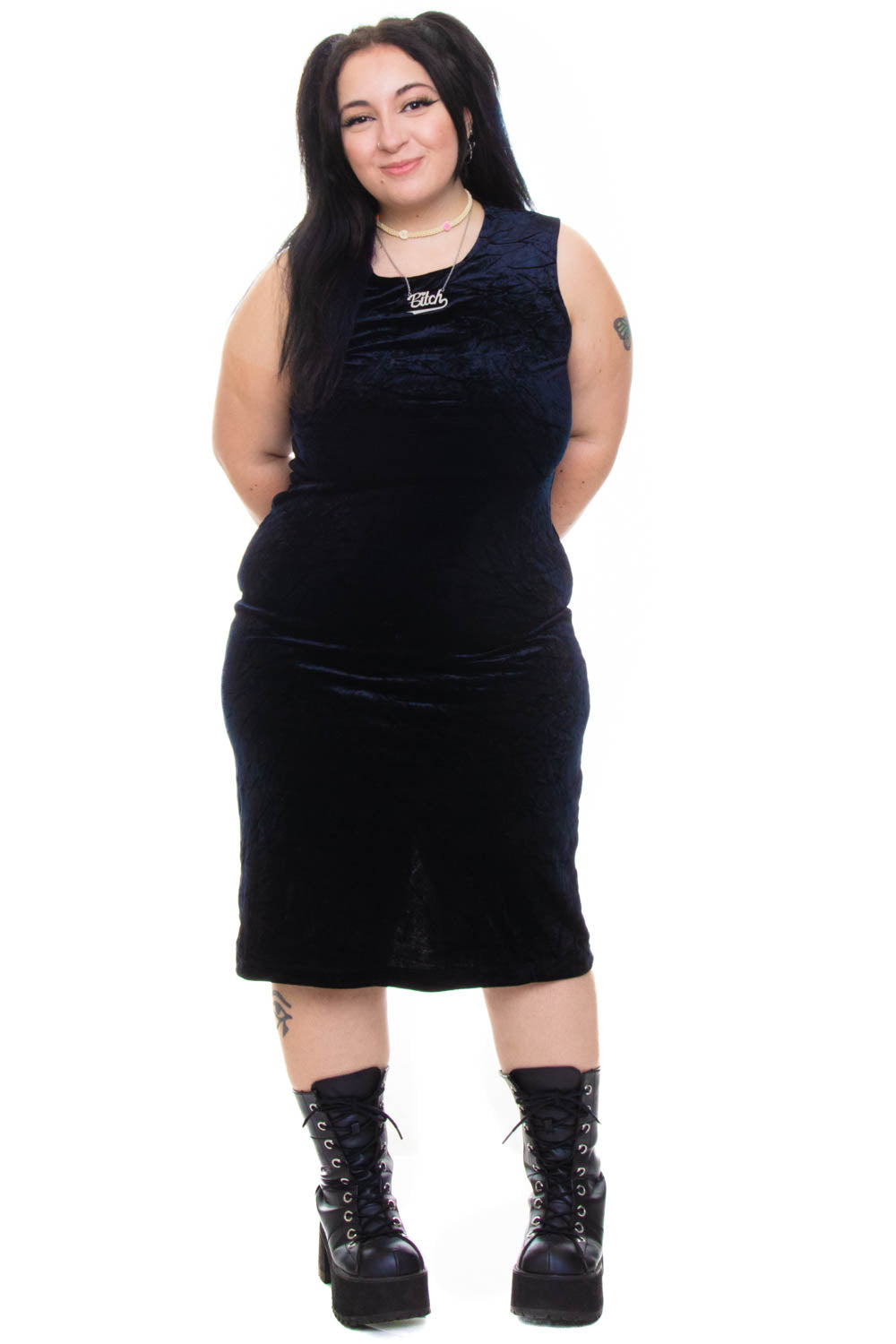 Vintage 90's black velvet tank dress super stretchy and cute!!!