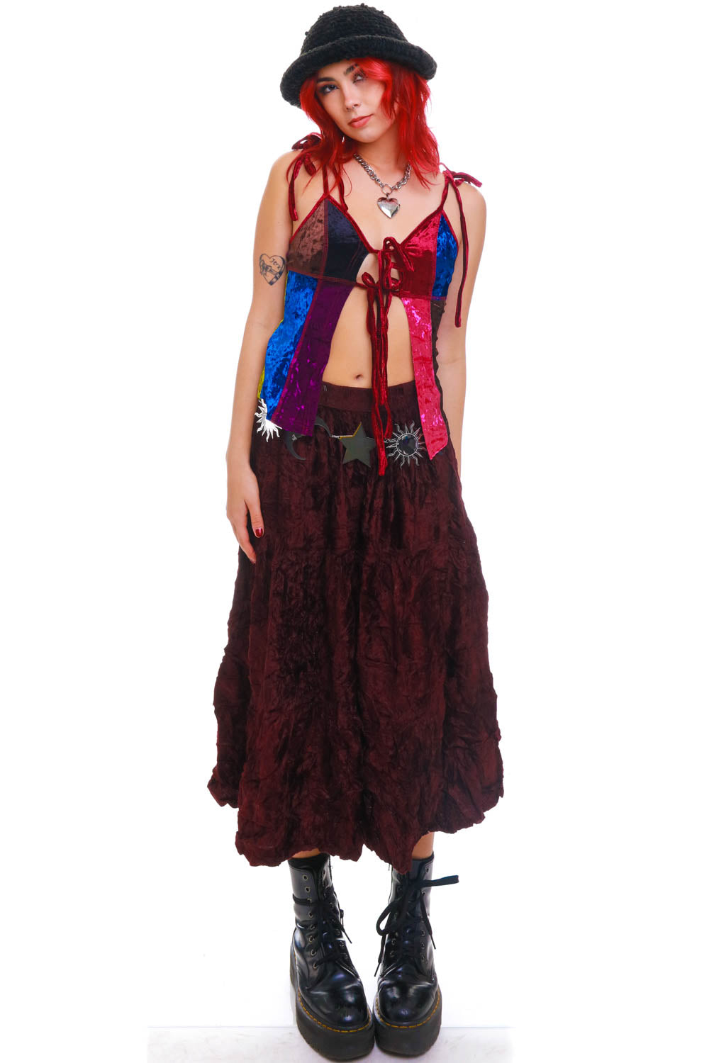 Vintage 90's Burgundy Velvet Midi Skirt