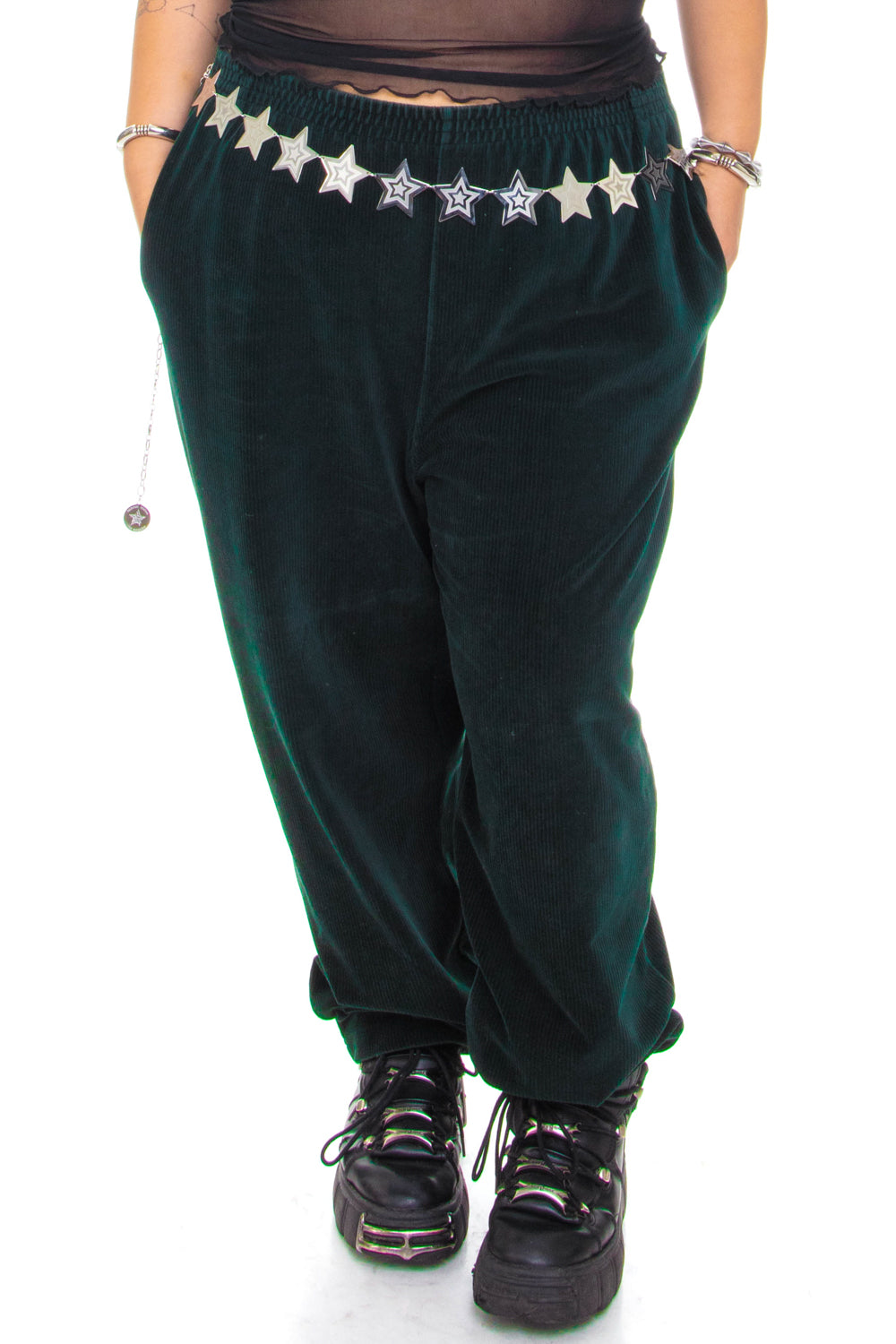 Vintage 90's soft dark green ribbed velvet pants with built in elastic waistband! So cute!!