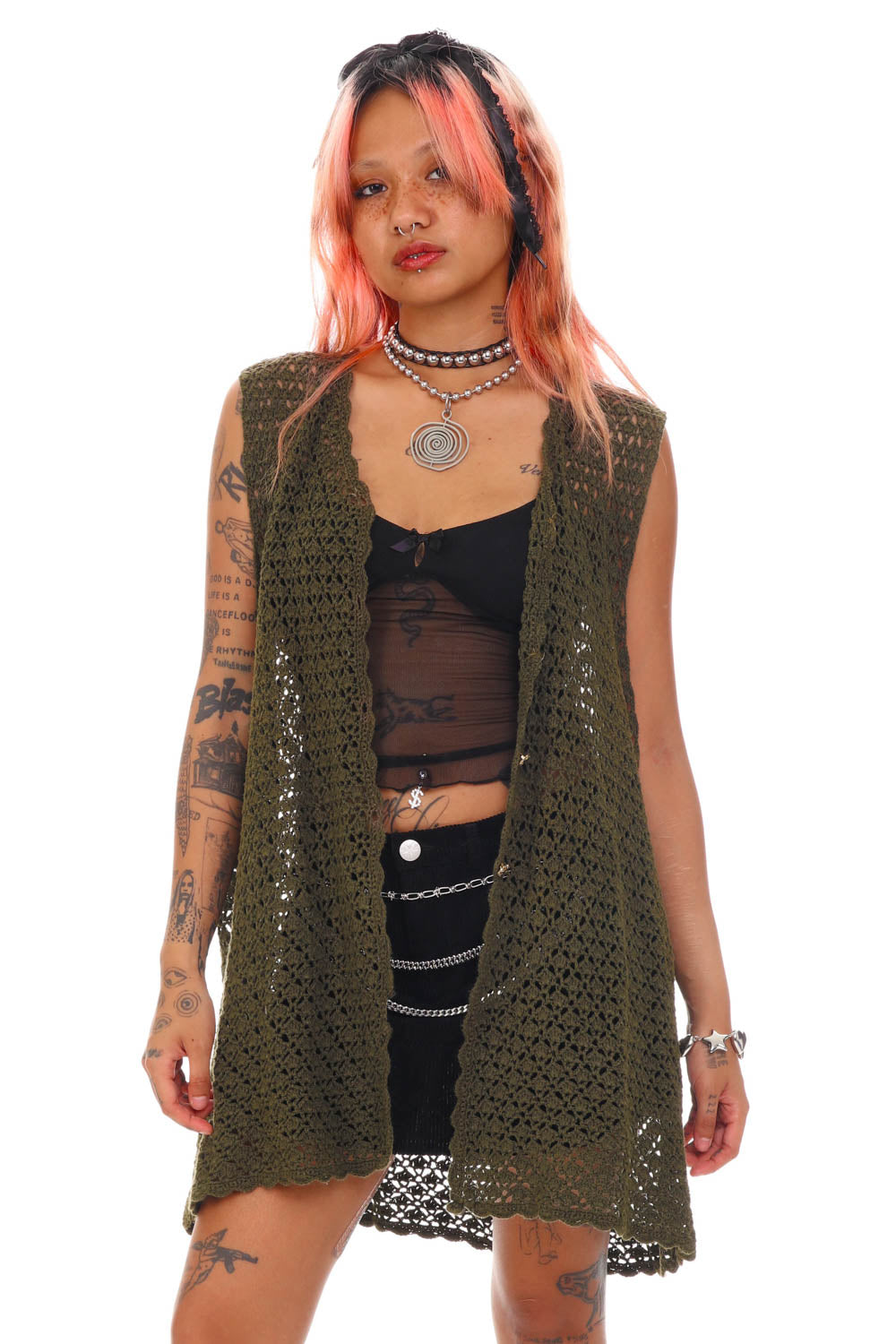 Vintage 90's forrest green knit vest with gold front button closure and super loose silhouette!!
