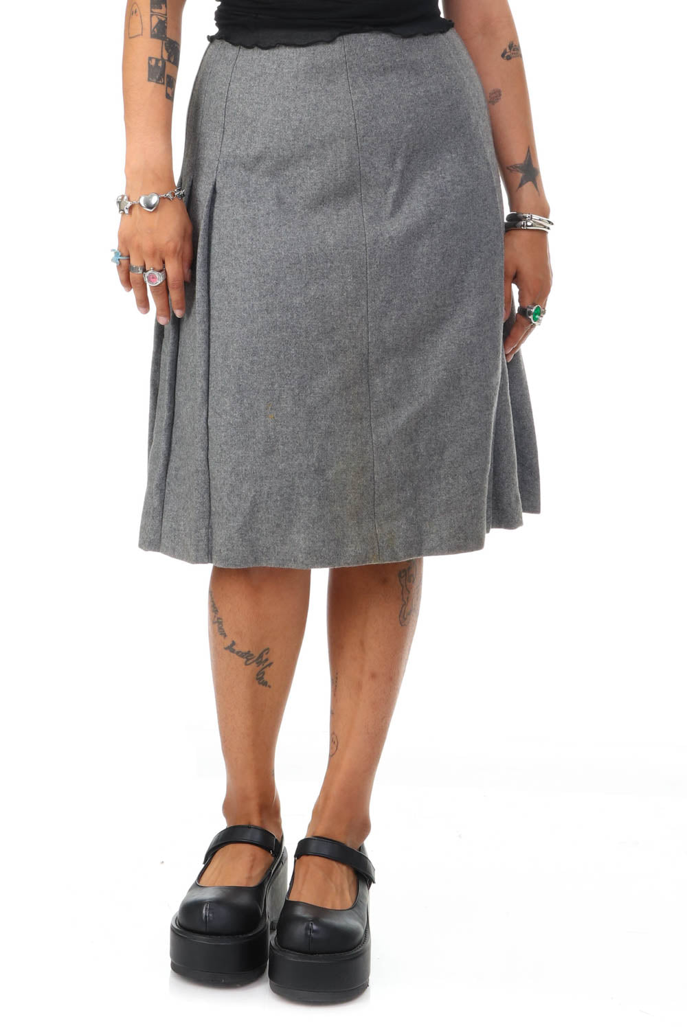 Vintage 90's soft wool blend pleated midi skirt with back zipper closure!