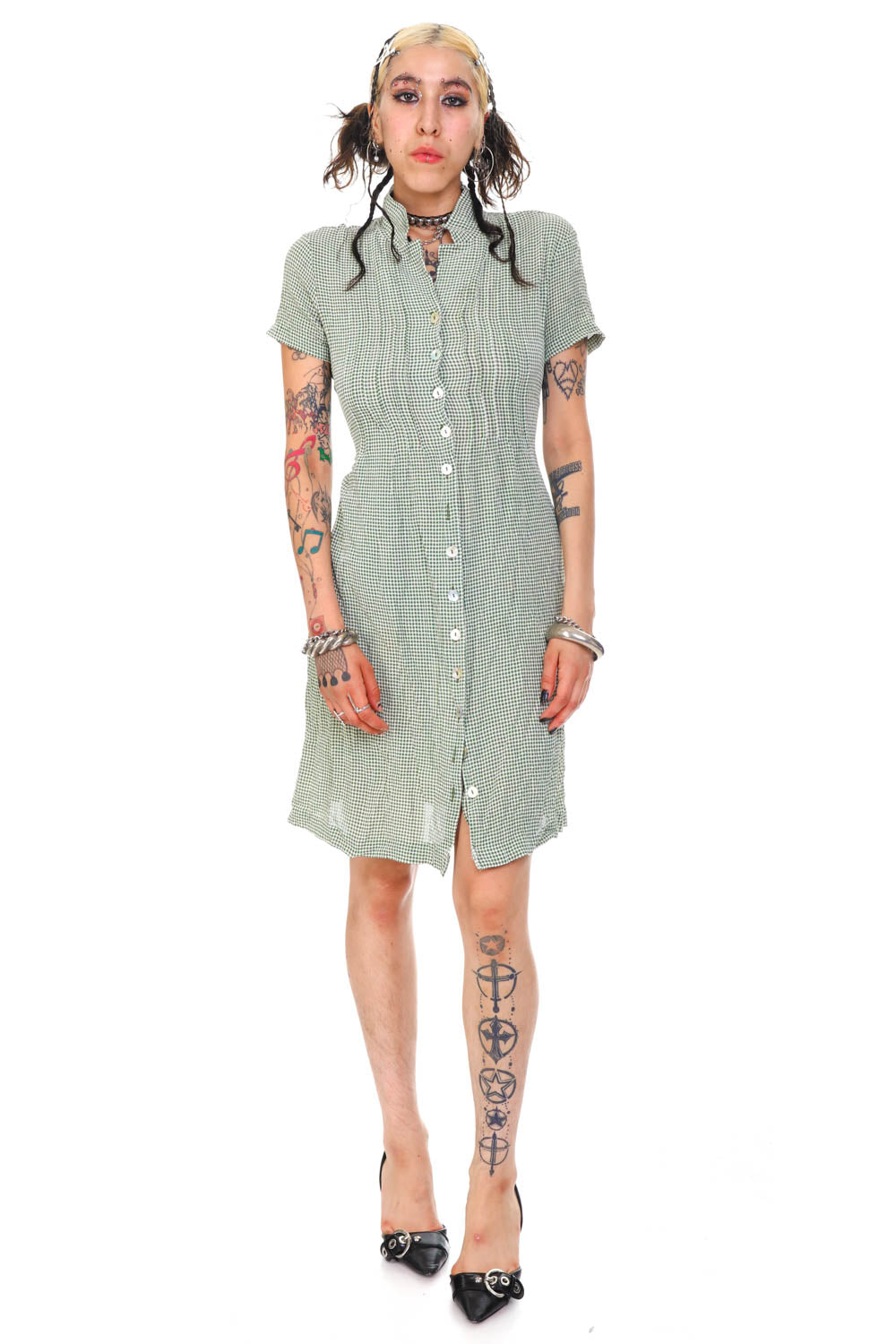 Vintage 90's Jones Green Gingham Button Up Dress