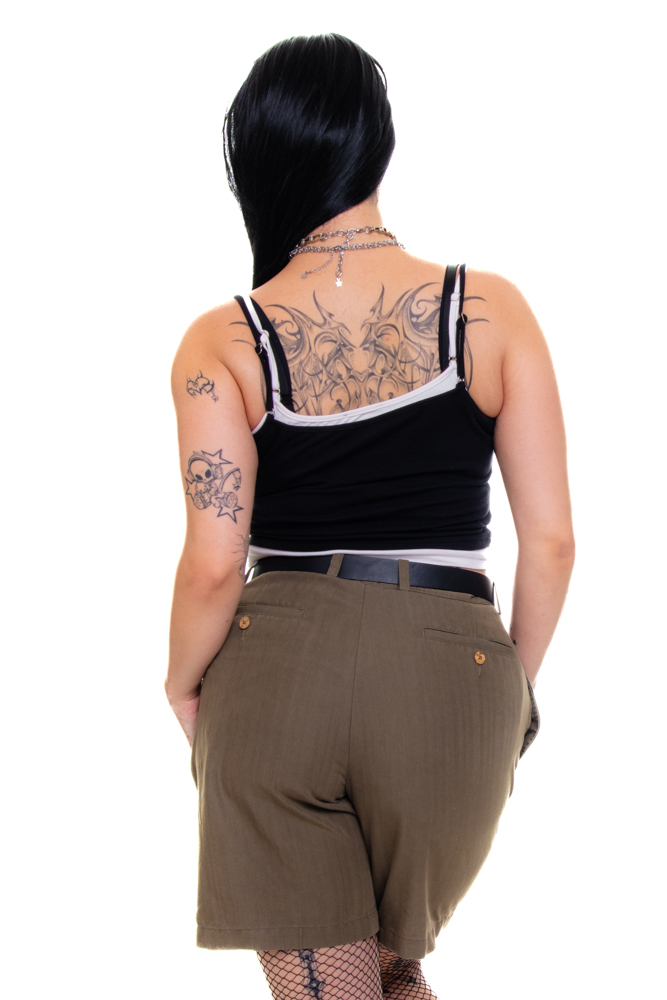 Vintage olive green herringbone super soft shorts with pleats at front!