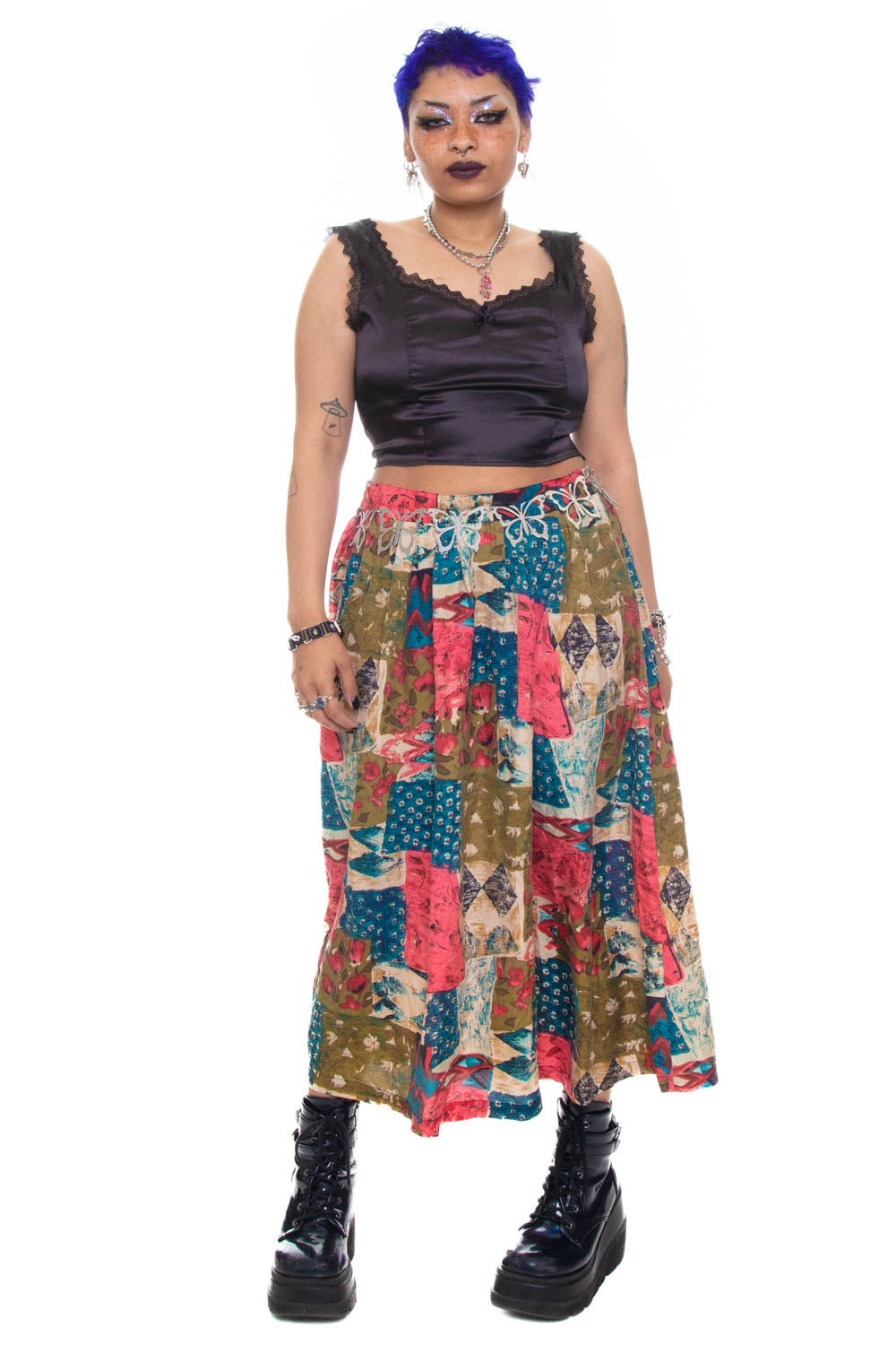 Vintage 90's Options Melrose Patchwork SIlk Skirt