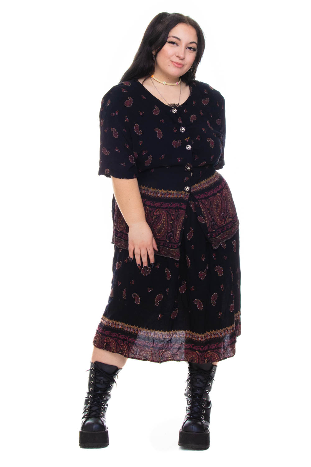 Vintage 90's Paisley Button Up 2 Piece Dress