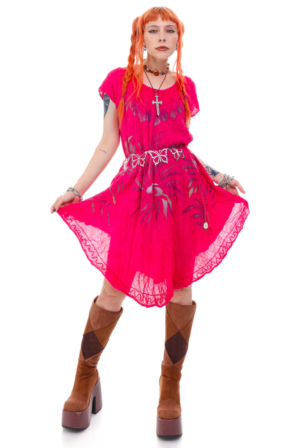Vintage 90's Pink Flower Tie Dye Embroidered Dress